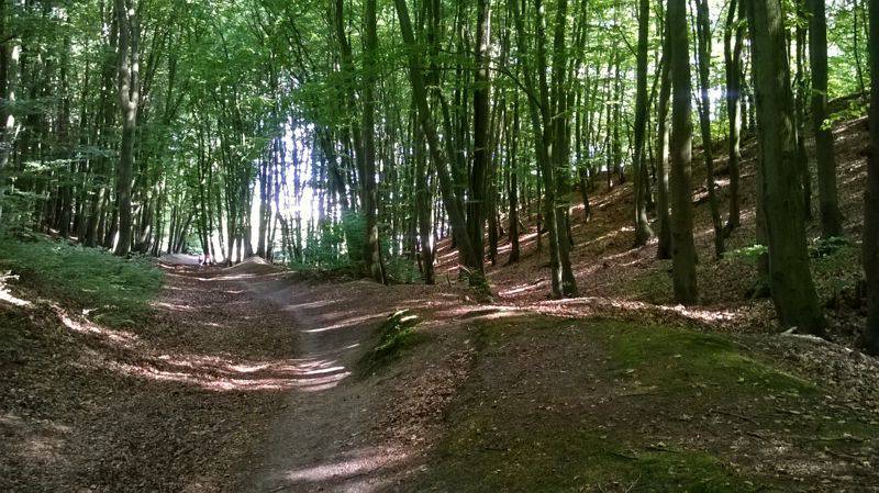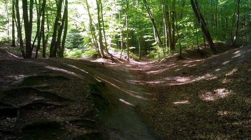 Potem Kościerską i Bytowską by na wysokości Dworu Oliwskiego odbić w lewo na Szwedzką Groblę. I tu zrobiłem jeden błąd, bo zamiast jechać dalej szlakiem skręciłem na wąską ścieżkę szlaku pieszego co skończyło się schodzeniem z góry na piechotę :)
