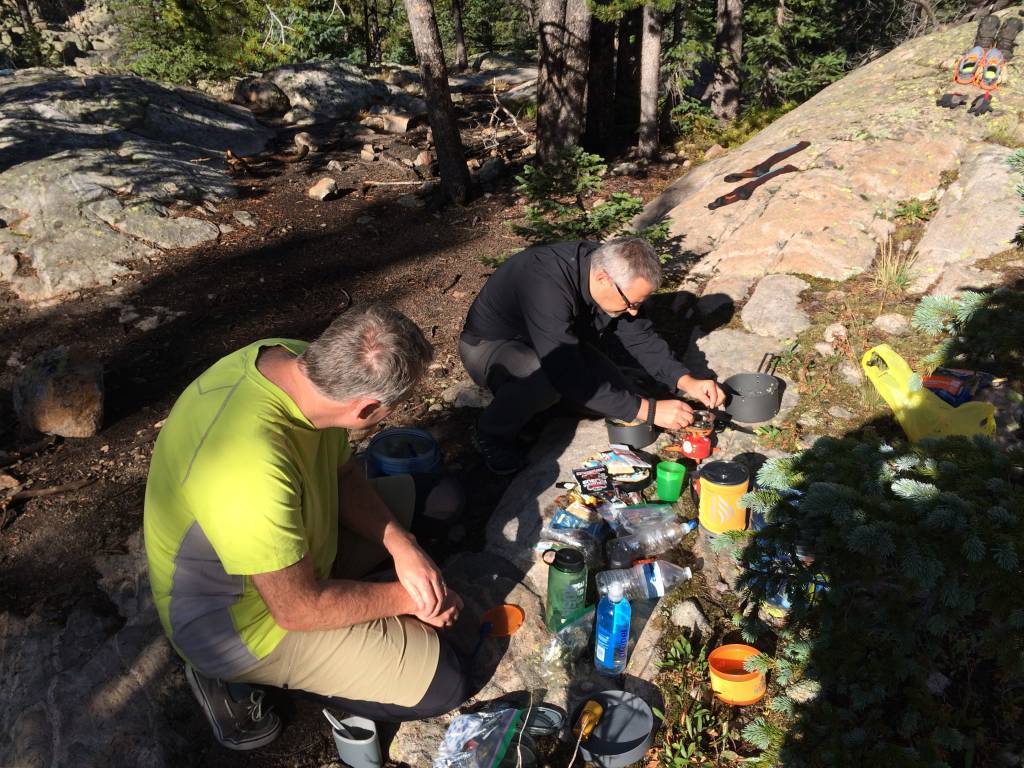 Dzien pierwszy planowanej cztero lub pieciodniowej trasy z Grand Lake do Bear Lake u podnoza "czternastotysiecznika" (w stopach, oczywiscie) Longs Peak. To miala byc stosunkowo "duza wycieczka" w 2015, jako ze zadnych innych powazniejszych nie bylo w planie. W sumie w tym pierwszym dniu wszystko odbylo sie zgodnie z planem. Kolega, jak rowniez wlasciciel motelu Valley High w Winter Park (http://www.valley-hi-motel.com/hi/ ) podwiozl nasza czworke do poczatku szlaku w Grand Lake - East Inlet trailhead - i zaczelismy maszerowac. Przedtem jeszcze w biurze Parku Narodowego odebralismy uprzednio zarezerwowane i zaplacone pozwolenie na przebywanie w Parku i na 4 noclegi na scisle wyznaczonych miejscach biwakowych.