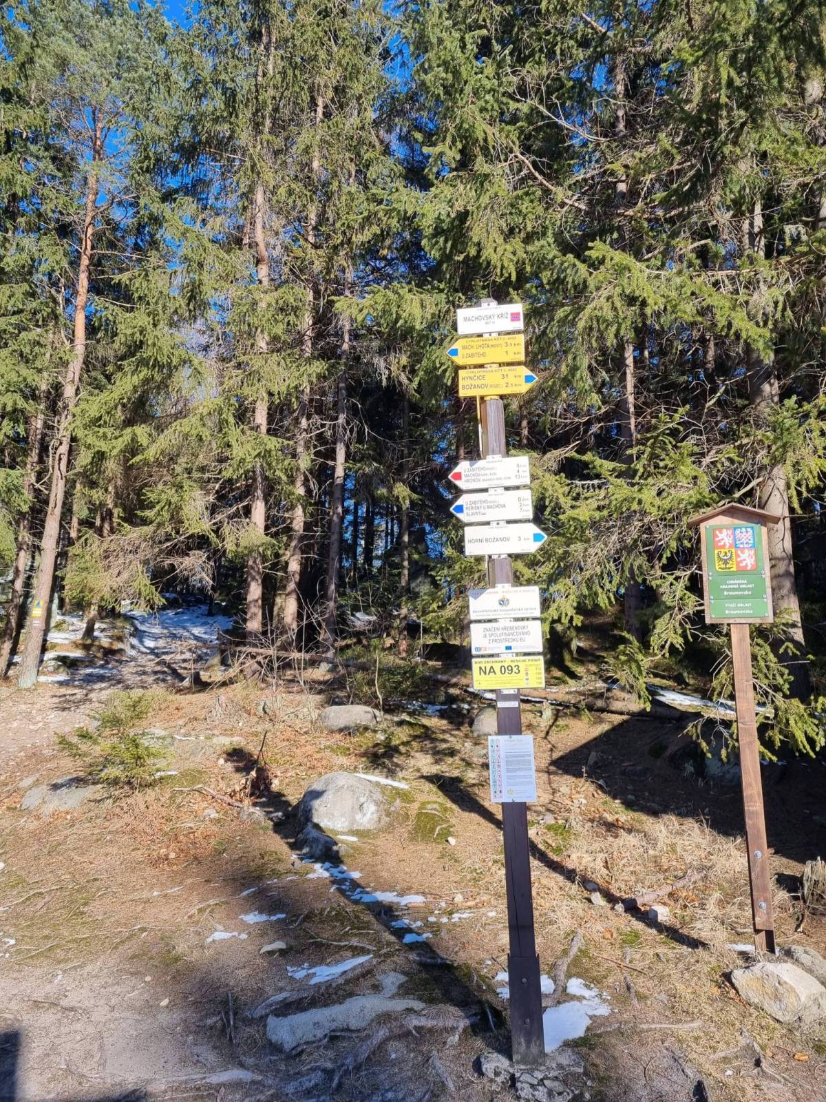 Mapa obejmuje bardzo atrakcyjną turystycznie czeską część Gór Stołowych. Podobnie jak w polskiej części masywu, także ten region obfituje w przeróżne ciekawe formacje skalne. Ciekawym szczytem Broumowskich Ścian jest leżąca nieopodal Koruna z punktem widokowym i interesującymi formacjami skalnymi na szczycie, natomiast za największą atrakcję uchodzi góra Hvězda (674 m n.p.m.), na której szczycie, na skalnej krawędzi, znajduje się barokowa kaplica Matki Boskiej Śnieżnej, wykonana z piaskowca ciosowego (zbudowana na podstawie pięcioramiennej gwiazdy). Miasta skalne znajdujące się w Adršpašskoteplickich skálach są jednym z najbardziej znanych piaskowcowych terenów wspinaczkowych na świecie. Między labiryntami form skalnych przebiega płatna trasa turystyczna niewymagająca żadnej wprawy przy chodzeniu po górach, składająca się z wygodnych schodków, poręczy, drabin i miejscami sztucznie wybudowanych chodników i platform. W pobliżu znajduje się też Teplickie Skalne Miasto – nieco mniej znane od Adršpašskoteplickich skál, lecz rozleglejsze, wyższe i bardziej dzikie.