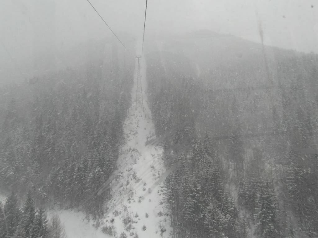 Z nieba lecą płatki śniegu wielkości pięciozłotówek. Na parkingu dwa samochody, gondole stoją, pusto...Otwarte? Tak. Czy jest ktoś poza nami? Nie. Czy mimo to, NA PEWNO uruchomią gondolki? Oczywiście, TAK.