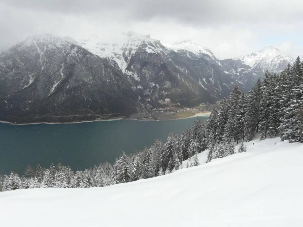 Kolejny dzień na nartach. Prognozy dla Zillertal nie są obiecujące - śnieg. Postanawiamy uciec z doliny kawałek na północ, gdzie wg Bergfex - są szanse na przejaśnienia. Po 28 km od Ried, gdzie mieszkamy - docieramy do Pertisau nad największym tyrolskim jeziorem Achensee: http://www.bergfex.p...tisau/panorama/