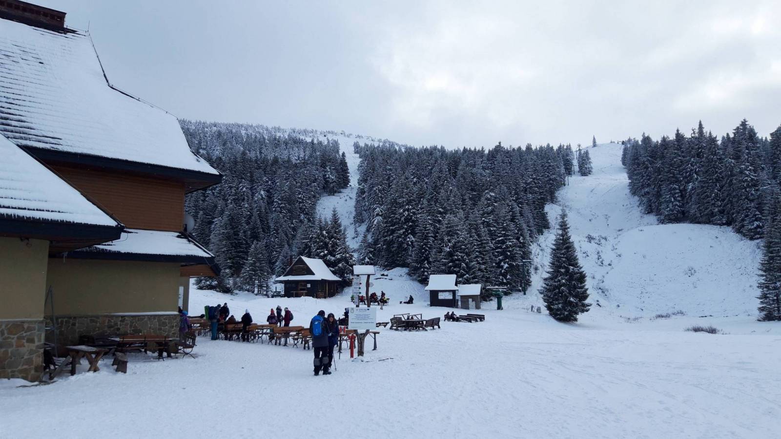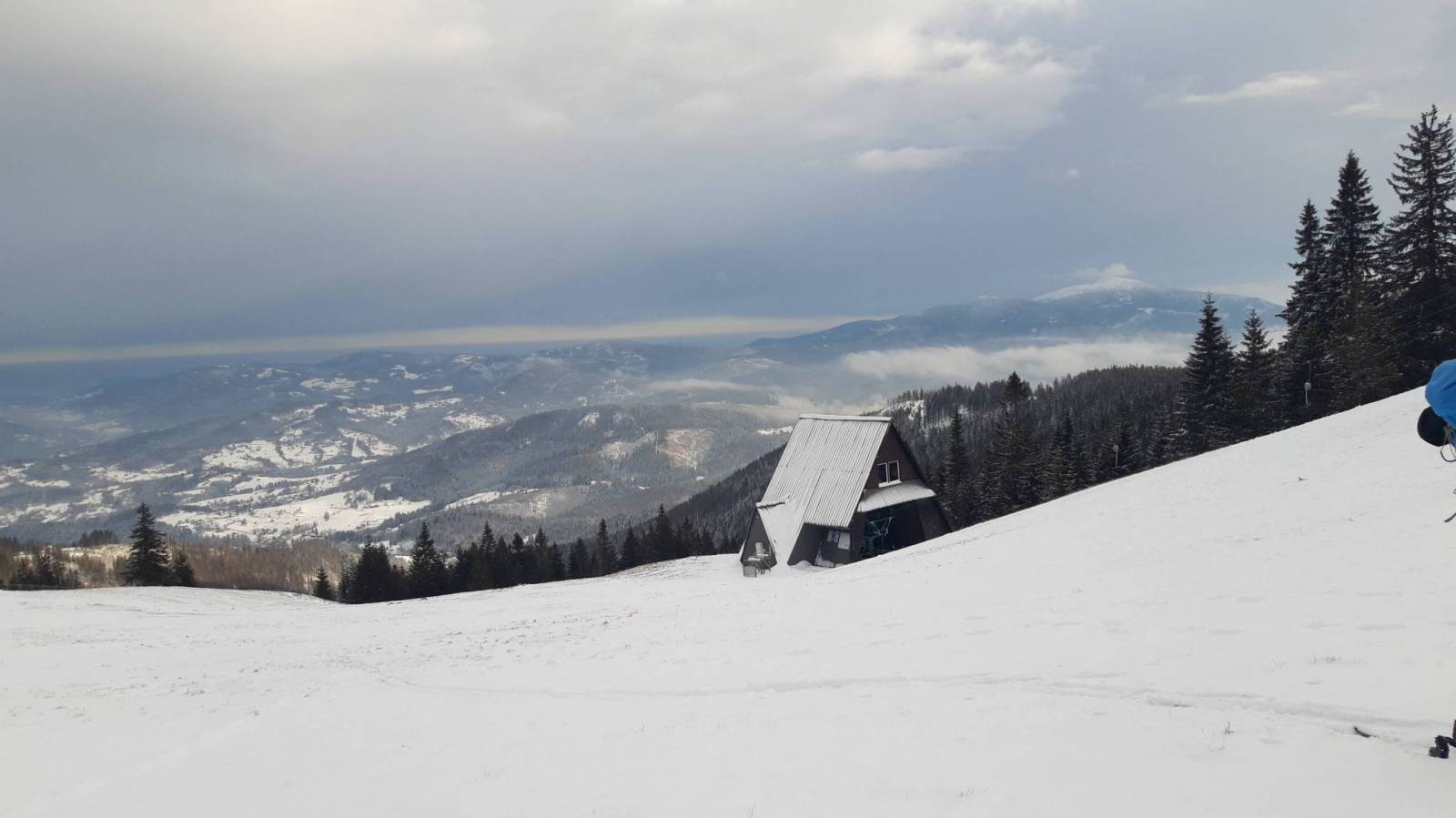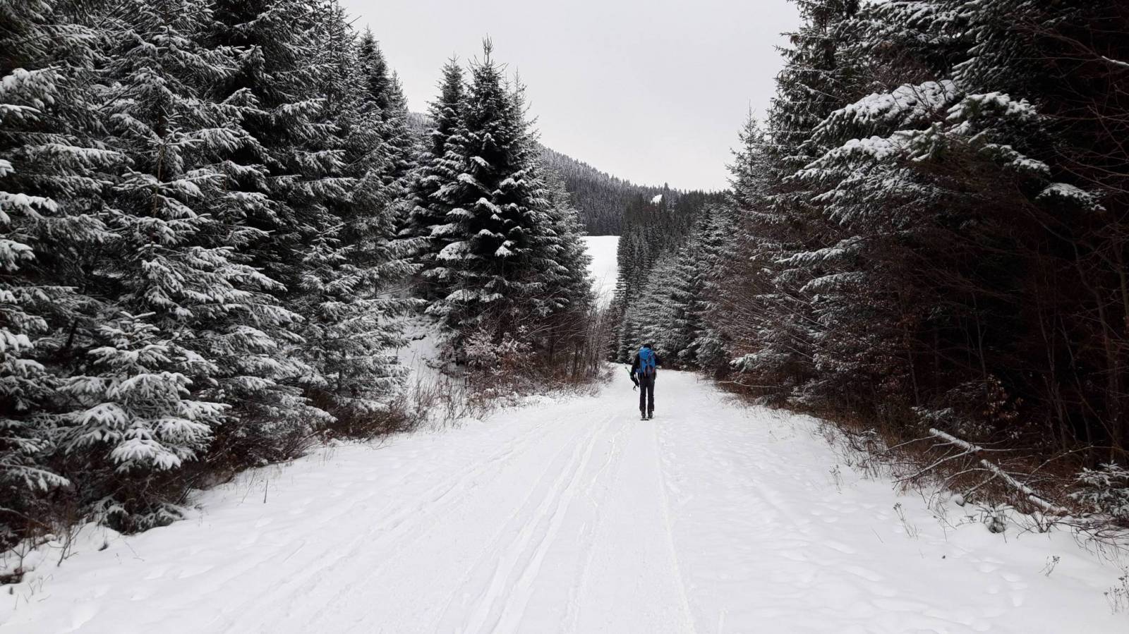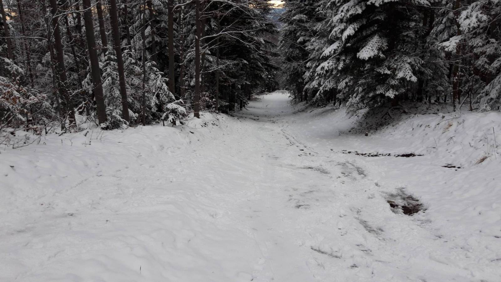 Skitura dla wytrwałych. Nie chciałem powtarzać raczej pewnego jeśli chodzi o warunki Skrzycznego i wybraliśmy Pilsko. Miałem nadzieję że wysokość zarówno szczytu jak i parkingu z którego zaczęliśmy spowoduje że warunki śniegowe jako takie będą. Przeliczyłem się jednak trochę. Pełno wystających kamieni i to właściwie bez względu na wysokość. Nawet na szczycie w miejscach wywianych trzeba było ściągać narty bo absolutnie nie dało się zjechać. Najlepsze warunki panowały na dole na odcinku naśnieżonej nartostrady przy pierwszym wyciągu w kierunku Soliska. Pętla wiodła w górę nartostradą wzdłuż wyciągu na Szczawiny i dalej nartostradą na Halę Miziową. Na Pilsko czarnym szlakiem także wzdłuż nartostrady do górnej stacji orczyka a dalej na polski wierzchołek. Na główny wierzchołek jeszcze kilka minut raczej płasko wzdłuż szlaku niebieskiego słowackiego. Zjazd rozpaczliwy z przystankiem na Hali Miziowej. W schronisku sporo ludzi z których nikt nie przestrzegał zaleceń sanitarnych. Po wypiciu piwa za 9 zł udaliśmy się czasem na nartach a czasem z nartami w rękach na Buczynkę i dalej nartostradą na Solisko. Dopiero z Soliska przyjemny zjazd na dół. Auto stało na parkingu w Kamiennej. Parking płatny 15 zł za dzień.