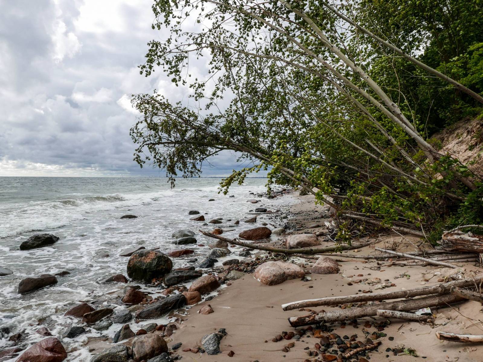 Wycieczka brzegiem morza na klify w Gdyni Orłowie. Wystarczy trochę wiatru i już plaża prezentuje się inaczej. Piękne fale, szum morza i pusta plaża, odpoczynek gwarantowany. Polecam trasę z rana.
