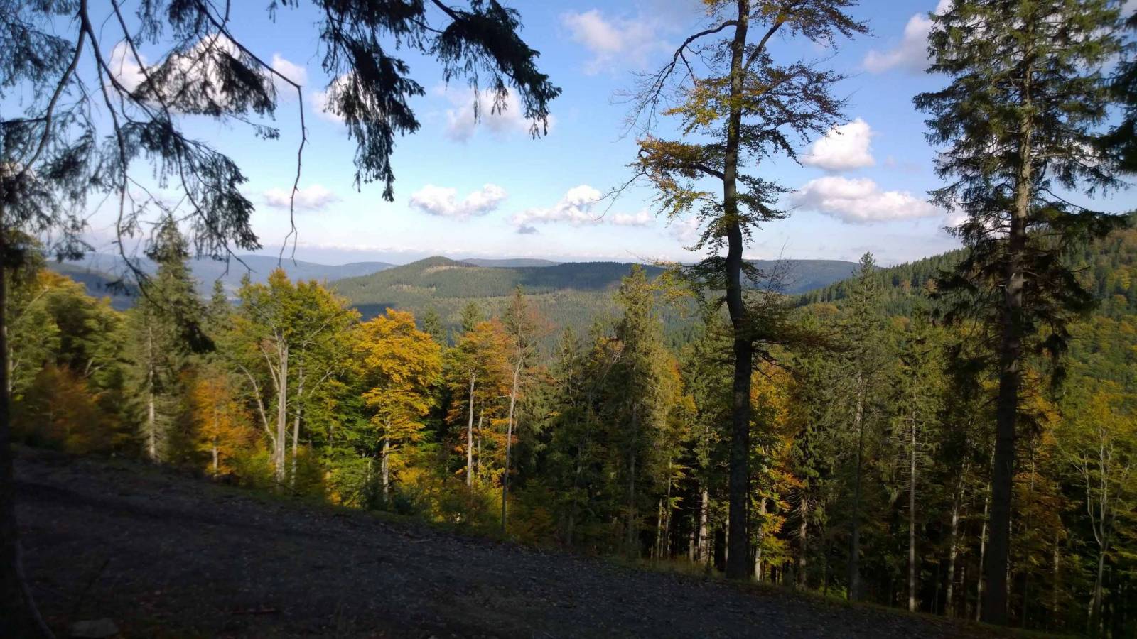 W nocy mocno jak na tę porę roku przymroziło , ale dzień pogodny . Zimno , a Żmijowiec trochę kusi . Dość trudny podjazd do Schroniska na Hali pod Śnieżnikiem a potem dość szybka jazda po Żmijowcu . Jesień się powoli zaczyna , ale to jeszcze nie to ;)