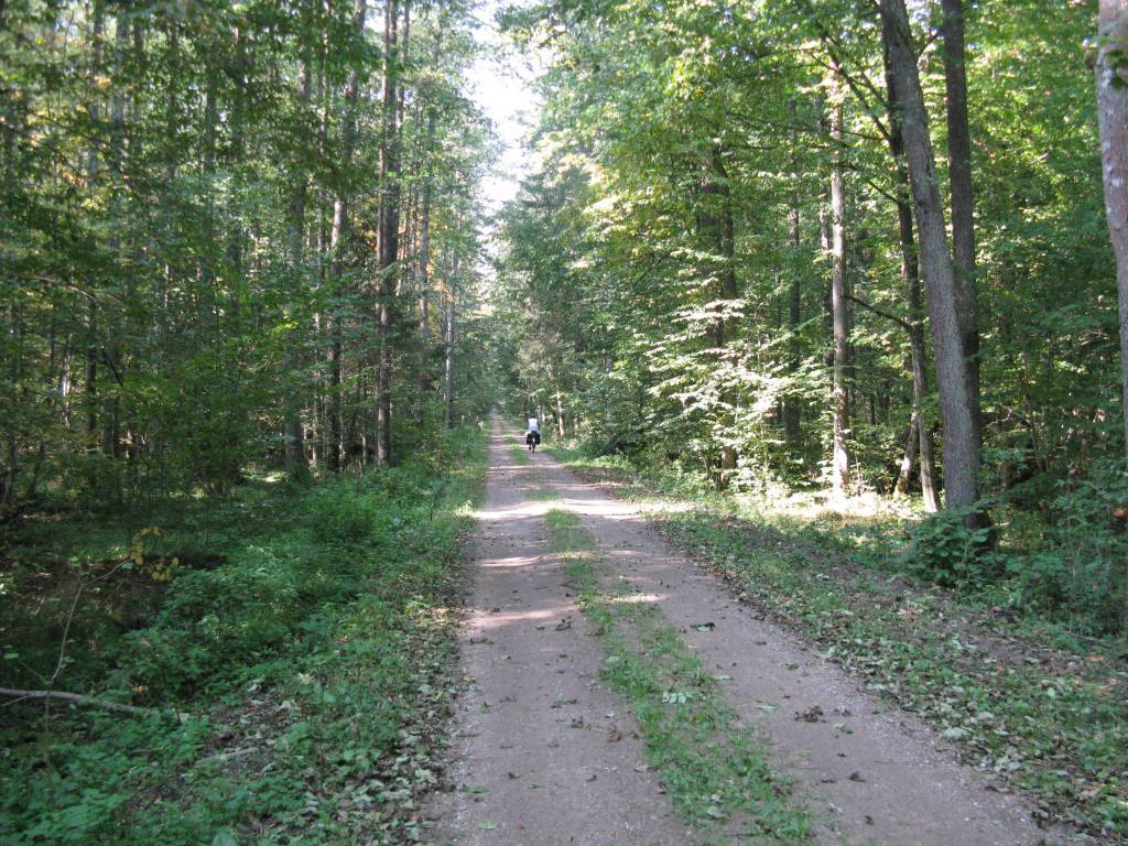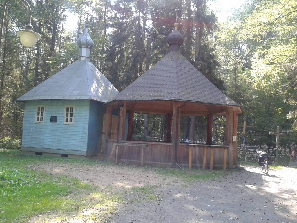 Zanim na dobre opuścimy Białowieżę odwiedzamy jeszcze stację kolejową. Drewniany, skromny dworzec oraz stojący na peronie skład w stylu retro z parowozem na czele przenoszą nas w XIX-wieczne realia. To zresztą świadomy zamysł obecnego właściciela Białowieży Towarowej, który przekształcił dawną stację w Restaurację "Carską". Można w efekcie zjeść tutaj dania kuchni rosyjskiej oraz przenocować w stylowych apartamentach z carskiej epoki. Po powrocie do centrum kierujemy się na asfaltową szosę biegnącą przez trzy bliźniacze miejscowości: Pogorzelce, Teremiski i Budy. Wszystkie powstały końcem XVIII w., jako osady przemysłowe, zasiedlane przez napływającą z Mazowsza ludność zwaną "budnikami". Ich celem była przeróbka leśnego surowca, z którego pozyskiwano m.in. węgiel drzewny, smołę, dziegieć (stosowany w celach leczniczych). Mieszkali w prymitywnych chatach częściowo zakopanych w ziemi dla ochrony przed zimnem. Stąd wziął się termin "budniki", jak i nazwa Budy. Po chwilowym odpoczynku w gościnnych podwojach "Zajazdu u Kolarza", którego jesteśmy pierwszymi klientami, zjeżdżamy na gruntowy trakt w kierunku Hajnówki. Stanowi on alternatywę dla ruchliwej szosy. Droga jest dobrze utrzymana i mało uczęszczana. Napotykamy na niej jedynie grzybiarzy. Na chwilę z prostego jak strzała szlaku odbijamy w boczną odnogę, aby dotrzeć do Krynoczki - śródleśnego uroczyska. To lokalny, prawosławny ośrodek kultu, malowniczo otulony zieloną ścianą lasu. Nieoczekiwanie na drodze do cudownego źródełka wyrasta przeszkoda w postaci zamkniętej bramy i ogrodzenia z siatki. Na szczęście za radą napotkanych tubylców znajdujemy dziurę w tym ostatnim, nieco powyżej leśnego duktu. Te zabezpieczenia to zapewne efekt sąsiedztwa wojskowego składu amunicji, czyli Jednostki "Nieznany Bór". Po zwiedzeniu Krynoczki wkrótce wyjeżdżamy z lasu wprost w zabudowę Hajnówki. Mamy tutaj zarezerwowany nocleg ale Justysia zaczyna roztaczać przede mną wizje wcześniejszego powrotu do domu. Zajeżdżamy więc na dworzec kolejowy. No cóż na przydworcowym peronie stoi jedynie szynobus do pobliskiej Czeremchy. Nawet z przesiadkami nie mamy możliwości jeszcze dzisiaj być w Tarnobrzegu. Wydaje się, że temat jest zamknięty kiedy moja nieustępliwa małżonka dokonuje istotnego odkrycia w czasie konsumpcji pizzy, a właściwie to obnaża mój błąd. Okazuje się, że pociąg, którym mamy wracać z Hajnówki w niedzielę nie kursuje. To by nas czekała przykra niespodzianka o poranku. Wracamy więc na dworzec i wsiadamy do wspomnianego szynobusu. W Czeremsze, oczekując na skład Kolei Mazowieckich do Siedlec rezerwujemy tranzytowy nocleg w Łukowie. Dalej już dzisiaj nie dojedziemy. Na docelową kwaterę nad tzw. "Zimną Wodą" docieramy już po zmierzchu, pedałując z konieczności dodatkowe parę kilometrów na obrzeża Łukowa. Przydaje się nawigacja ale szczęśliwie docieramy do celu przy akompaniamencie głośnej muzyki z uwagi na trwającą nad zalewem imprezę. Na drugi dzień kontynuujemy podróż powrotną z przesiadką w Lublinie, już bez poważniejszych akcentów rowerowych. Wyprawa dobiega końca i chociaż może zabrakło w jej trakcie dokładniejszej penetracji puszczańskich ostępów, to cel główny, czyli Białowieża został osiągnięty. A może następnym razem z Białowieży do Krynicy Morskiej, dalej wzdłuż polskich granic? Się zobaczy, ważne, ze koncepcja jest.