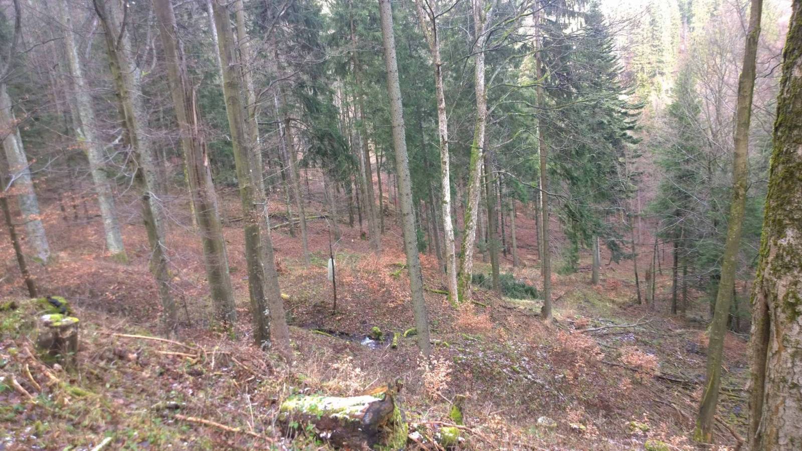 Dziś w drodze na Janową Górę schodzę z głównej drogi do miejsca , gdzie o tej porze roku widoczny jest sporej wielkości pomnik . Napis na pomniku głosi , że został tu postawiony w ramach wdzięczności za wyjście z trudnej sytuacji . Miejscowi mówią ,że kilkanaście lat temu w przepaść stoczył się samochód z myśliwymi , którym nic się nie stało .