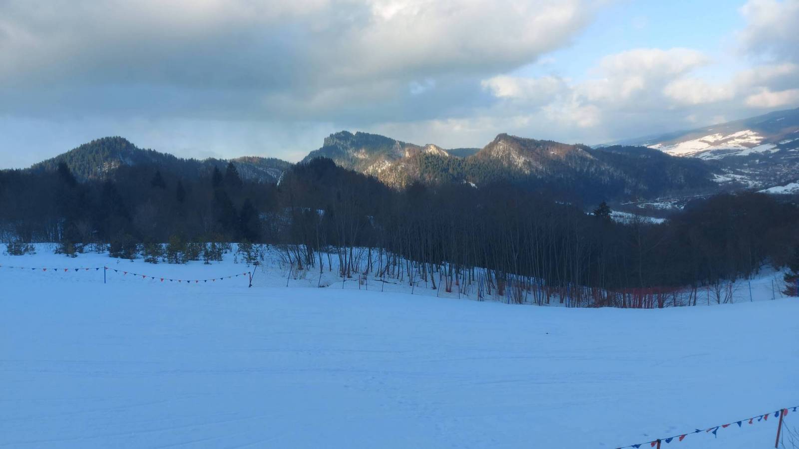 Dwugodzinny wypad na narty na Palenicę w dniu wyjazdu po tygodniowym zimowym pobycie. Ośrodek czynny jest od 7:30 więc można było sobie pozwolić na jazdy przed pakowaniem i opuszczeniem kwatery przed 11:00. Ze względu na treningi jeździliśmy tylko trasą niebieską ale przygotowana była wzorowo a lekki mróz powodował że przez te dwie godziny jej stan się nie pogorszył. Jeździliśmy praktycznie sami przez pierwszą godzinę a później pojawiło się kilkanaście osób których na trasie właściwie prawie nie było widać. Super zakończenie urlopu.