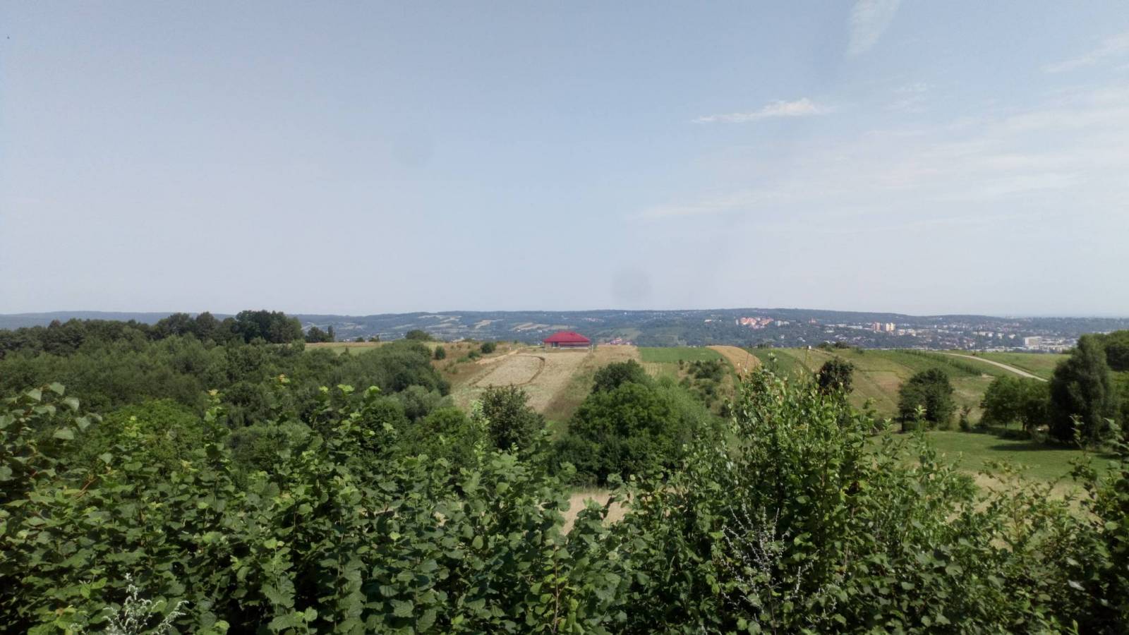Pierwszy dzień wędrówki po Pogórzu Przemyskim... Pogoda była dobra, momentami nawet słońce zbyt się dawało we znaki, ale duża część trasy na szczęście prowadziła lasami. Rozpoczęliśmy w Przemyślu, wysiadając z buda na ul. Piłsudskiego. Dalej Waygarta (mijając PTTK) oraz Kmity, dochodząc do zamku. Obeszliśmy go od zachodu, idąc przez park i pilnując czerwonego szlaku, który miał nam przez najbliższy czas towarzyszyć. Po zrobieniu kilku zdjęć, ruszyliśmy dalej, wspinając się Zniesienie, wzgórze górujące nad Przemyślem. Podeszliśmy do Krzyża Zawierzenia i wróciliśmy koło Bramy Fortecznej na ulicę Pasteur'a. Nią zaczęliśmy powoli opuszczać Przemyśl. Za Zielonką weszliśmy w las, na rozwidleniu dróg były drogowskazy kierujące do fortów. Z racji, że byliśmy blisko Fortu Kruhel, weszliśmy w las, schodząc na chwilę ze szlaku aby obejrzeć jego pozostałości. Zachowało się ich całkiem dużo, pochodziliśmy po powierzchni i wróciliśmy na szlak. Przy ostatnich zabudowaniach natrafiliśmy na punkt widokowy z dość nieczytelnymi już tablicami. Ładnie było stąd widać najbliższe okolice Przemyśla.