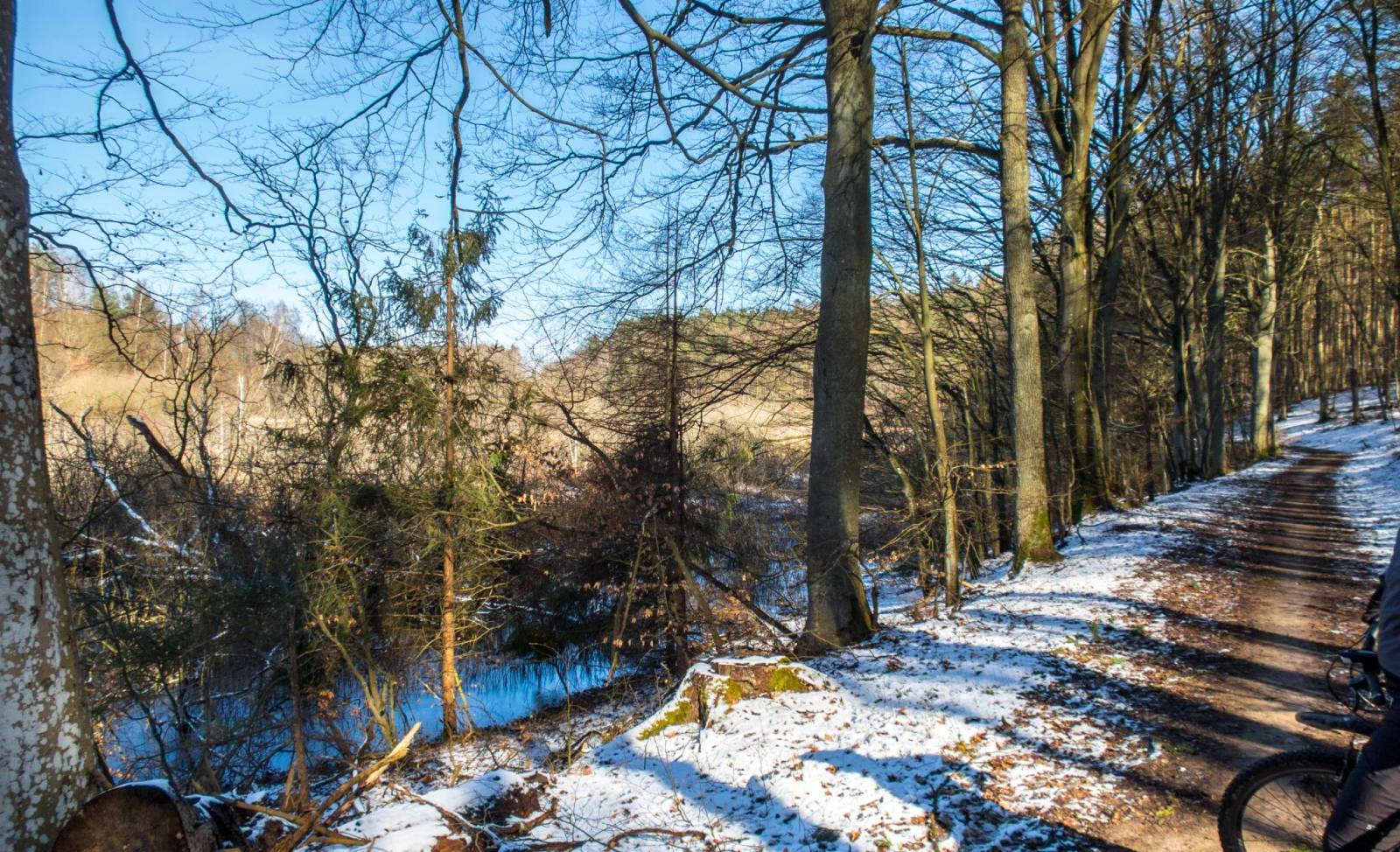 Mimo piątkowo-sobotnich opadów śniegu w niedzielę było już w miarę ciepło, śniegu też coraz mniej było widać. Przez nieuwagę zaliczyłem głębokie błoto, prawie po osie - sam nie wiem jak z tego wyjechałem ;)