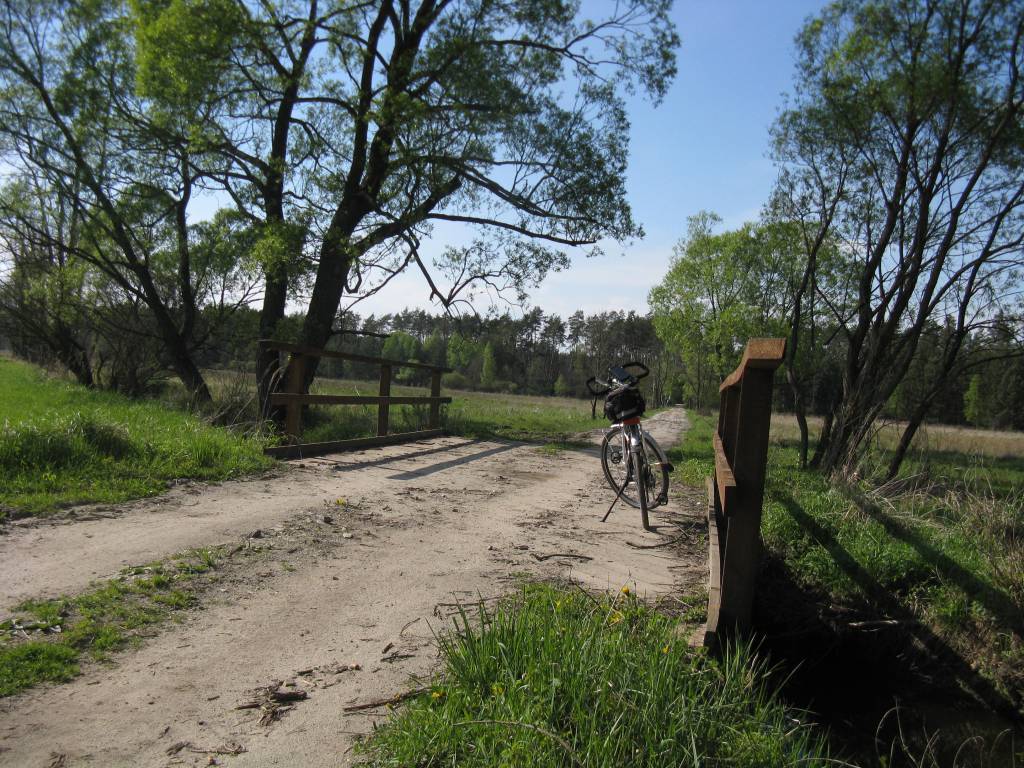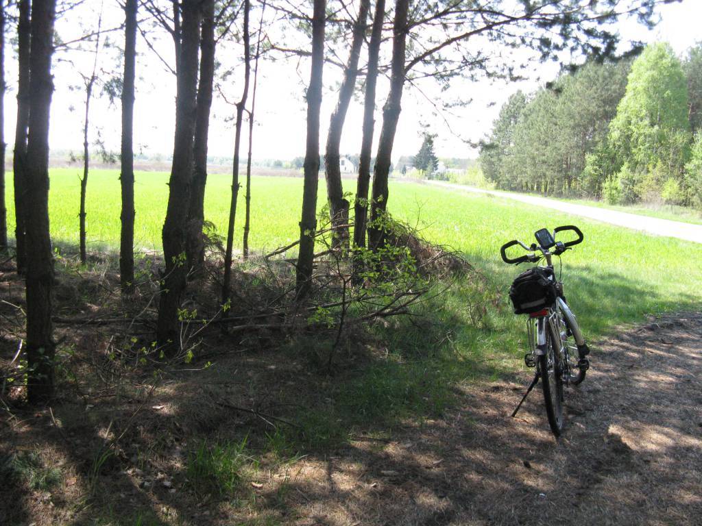 Pierwsze 40 kilometrów dosłownie uciekło mi spod kół, prowadząc po dobrej jakości asfalcie. Schody zaczęły się od Czajkowej wraz z wjazdem w las. Pojawiła się gruntowa droga pełna dziur, wypełnionych kałużami. Na rozjeździe przy Kaplicy św. Huberta spotyka mnie niespodzianka w postaci traktu w dużej mierze pokrytego płatami starego, zniszczonego asfaltu. Zaraz jednak trzeba było się pożegnać z tym nieco lepszym fragmentem śródleśnego szlaku i odbić na drogę prowadzącą w kierunku rezerwatu „Pateraki”. Momentami trasa była tu rozjeżdżona przez ciężki sprzęt pracujący przy zwózce drewna, którego pryzmy zeskładowano na poboczu. Dobrym rozwiązaniem było w tej sytuacji wybranie miększego przełożenia i jazda po skrajni drogi. Asfalt ponownie pojawił się na skraju Ostrowów Baranowskich. Swoją drogą jadąc przez las doświadczyłem swoistego deja vu. Z każdym kilometrem nabierałem pewności, że podążałem już kiedyś tą samą trasą tyle, że w odwrotnym kierunku. Było to w czasach przedpotopowych, kiedy to posiadanie komórki, aparatu fotograficznego nawet mi się nie śniło, a za środek transportu służył poczciwy „Jubilat”. Do tego zamiast gładkiego asfaltowego dywaniku przez Ostrowy wiodła dziurawa, jak sito szosa i to chyba fragmentarycznie. Przejechawszy przez prawie całą, rozciągniętą zabudowę wsi kieruję się do rezerwatu „Jaźwiana Góra”. Pomimo GPS-a i mapy pewnie bym pobłądził w plątaninie leśnych duktów gdyby nie bardzo dobrze oznakowana ścieżka edukacyjna. Biało-zielone prostokąty prowadzą w końcowej części wąską percią do śródleśnego kręgu. Pełno tu tablic edukacyjnych, są również drewniane ławeczki, a pod nogami miękkie leśne poszycie. Słońce praktycznie tutaj nie dochodzi więc latem ta swoista oaza zieleni może być naturalnym schronem przed upałami, o ile nie objawi się plaga komarów. Z rezerwatu nie wracam na asfalt tylko kieruje się w długą prostą na zachód, ponownie zgłębiając leśne ostępy. Trasa jest przejezdna, jedynie w końcowej części trochę telepie na zbyt obficie wysypanym drobnym kamyczku. Znajduje się na niej urokliwa śródleśna polana, przecięta leniwym nurtem „Smarkatej”. Zatrzymuję się na chwilę na drewnianym mostku, aby zagrzać się w promieniach słońca obserwując przy tym otwartą przestrzeń. A nuż trafi się, jaki dziki zwierz. Ostatnim akordem leśnej części wycieczki jest przejazd bardziej piaszczystymi traktami do szosy na skraju Durdów. Muszę na chwilę zejść z roweru, ponieważ zaczyna mną ciskać na boki. Ale to chwilowa niedogodność. W całościowym ujęciu jakość puszczańskich szlaków jest zadowalająca, czyli przejezdna. Z roweru praktycznie nie schodziłem w trakcie ich penetracji. Poza lasem ostatnie fragmenty nawierzchni nieasfaltowej trafiają się na krótkich łącznikach pomiędzy Durdami, a Markami oraz Markami i Zawodzianami. Trasę kończę obowiązkowo przejazdem wzdłuż linii brzegowej Jeziora, napawając oczy widokiem jego wodnej tafli. No cóż co prawda w skromnym jednodniowym wydaniu ale majówkę rowerową udało się jednak uratować wbrew pogodowemu pesymizmowi meteorologów. Dane z licznika SIGMA 1609: dystans: 90,57 km., czas: 5:24:18, prędkość średnia: 16, 74 km/h, prędkość maksymalna: 35,11 km/h