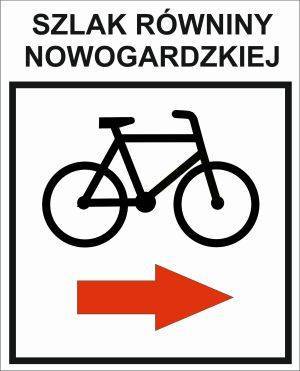 KOLOR: czarny rower na białym tle, ze znakiem kierunkowym - czerwony