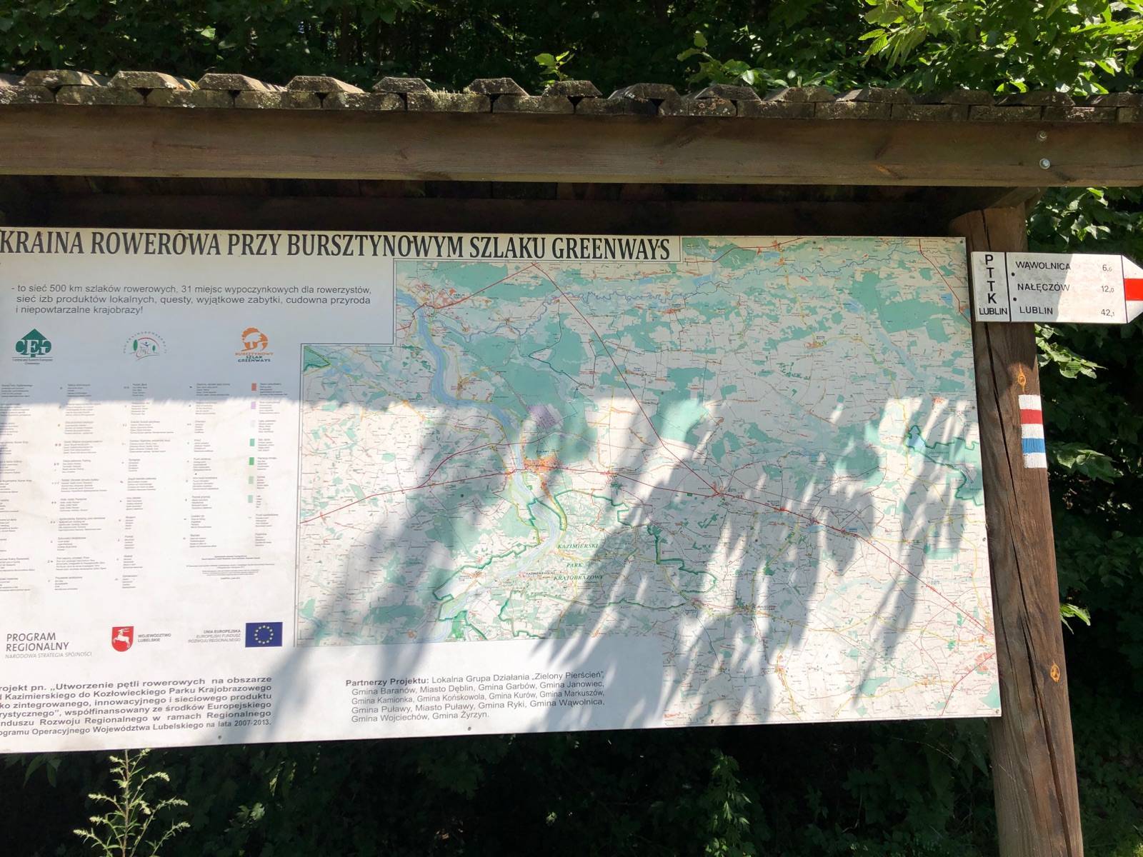 Trasa jednej ze ścieżek dydaktycznych Kazimierskiego Parku Krajobrazowego. Znaków ścieżki w terenie jednak nie widać - należy kierować się znakami niebieskiego szlaku turystycznego PTTK (w wąwozie), a potem na polach - czerwonym i czarnym szlakiem nordic walking.