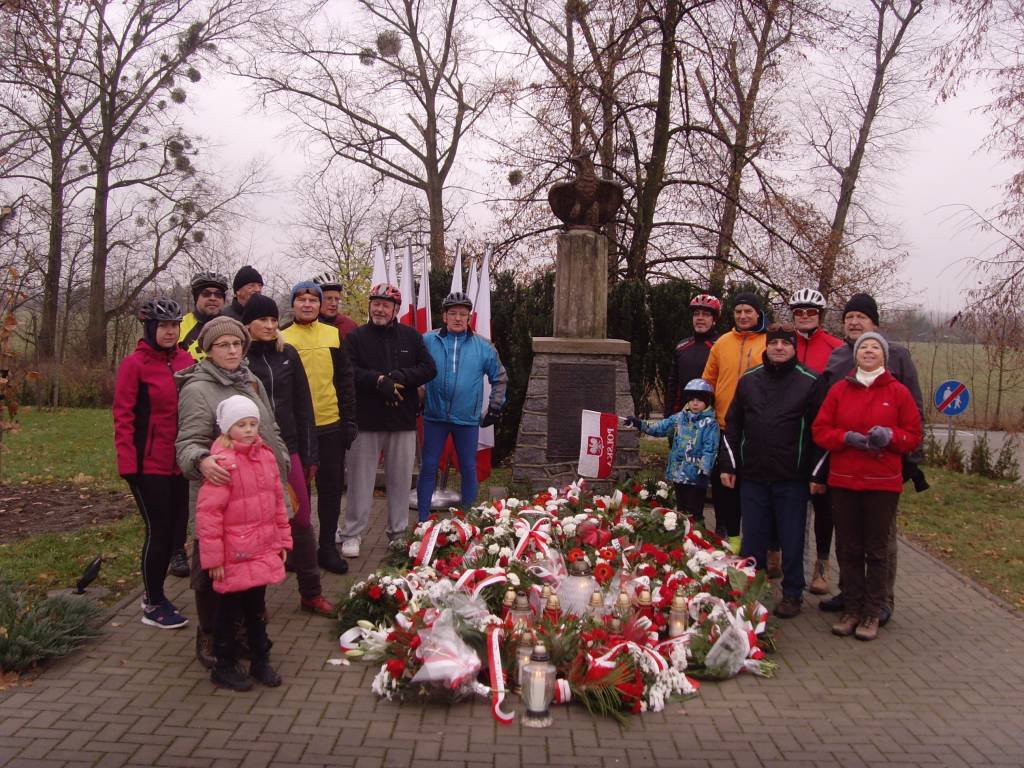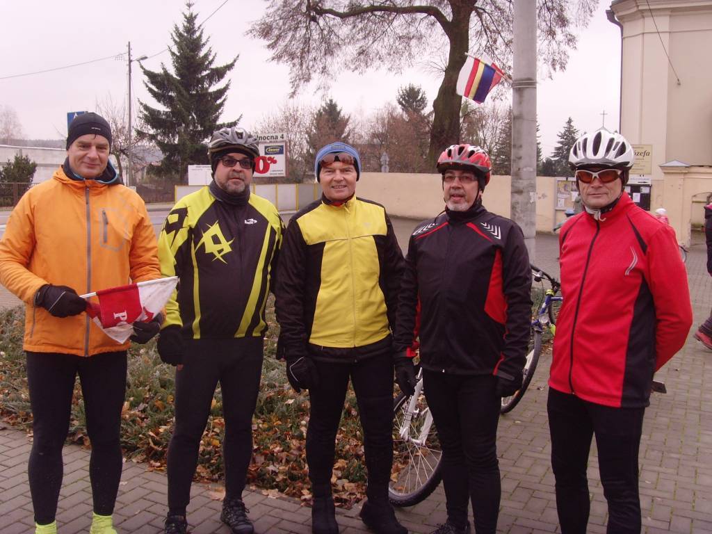 Pogoda w świąteczny dzień była trudna: zimno ok. 3 st. C. wilgotne powietrze i duże zachmurzenie nie wróżące nic dobrego. Dlatego pewnie frekwencja na zbiórce pod Halą MOSiR pod adresem Partyzantów 11, nie była za duża. Z Browersów byli: Krys, Andre, Darek z Mikołajkiem i Morda. O godzinie 11.11 dnia 11.11 wyruszyliśmy w trasę, której celem był pomnik upamiętniający odzyskanie niepodległości na Włostowicach. Pojechaliśmy pętlą, która zaczynała się od ścieżki rowerowej w stronę Azotów i dalej prowadziła przez Majdan, Wólkę Profeską, Bulwar Nadwiślański, Marinę i ścieżkę rowerową nad Wisłą. Potem błotnistą drogą gruntową w stronę stacji paliw BP i po krótkim odcinku chodnikiem, dojechaliśmy do celu. Tam nastąpiło uroczyste złożenie wieńca pod pomnikiem przez delegację, w której ze strony Browersów brał udział Mikołajek. Po zrobieniu pamiątkowych zdjęć, dość szybko wszyscy rozjechali się do domów. Było zimno. Darek, Andre i kolega Andrzej z PRR mieli ochotę skoczyć jeszcze do Kazimierza Dolnego, ale trzeba było odwieźć do domu zmarzniętego Mikołajka. Andre też uznał, że lepiej jak już pojedzie do domu. Uznaliśmy, że w tym momencie zatrzymuje się licznik browersowy.