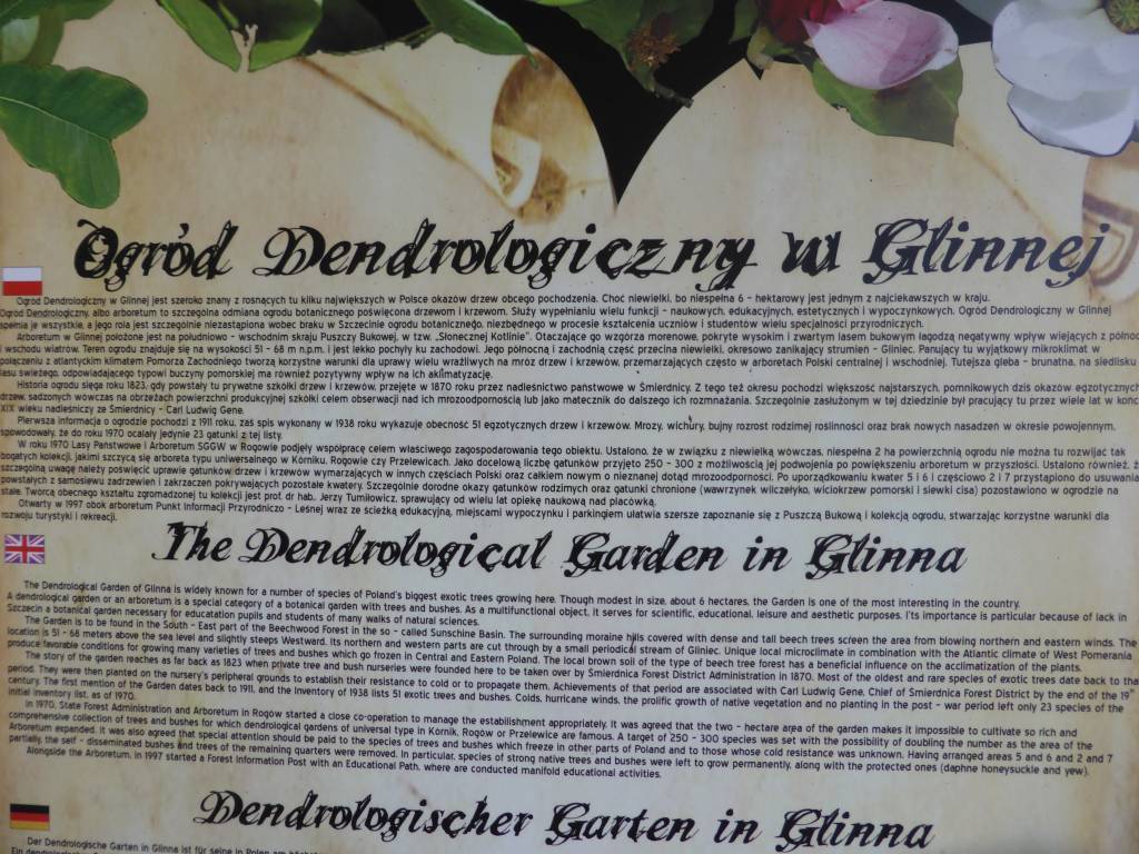 Rajd zaczęliśmy od zwiedzania Ogrodu Dendrologicznego w Glinnej, dalej przeszliśmy przez Puszcze Bukową.Ogród Dendrologiczny w Glinnej jest znany w Polsce z rosnących tu kilku największych w naszym kraju okazów drzew obcego pochodzenia. Położony jest na południowo - wschodnich obrzeżach Wzgórz Bukowych, na pograniczu Równin Wełtyńskiej i Pyrzycko-Stargardzkiej. Otaczające go morenowe wzgórza pokryte wysokim bukowym lasem, łagodzą negatywny wpływ zimnych wiatrów ze wschodu, północy i zachodu.Historia ogrodu sięga roku 1823, gdy powstały tu prywatne szkółki drzew, przejęte w 1870 roku przez nadleśnictwo państwowe w Śmierdnicy.Zgromadzona tu kolekcja liczy obecnie ponad 800 gatunków i odmian drzew i krzewów, przede wszystkim egzotycznych.Różnorodność siedlisk Wzgórz Bukowych powoduje, że wykształciły się tu wyjątkowo liczne zbiorowiska roślinne z bardzo bogatą florą. Stwierdzono tu 25 zespołów zaroślowych i leśnych, 15 zespołów roślinności wodnej, 38 mokradłowych, 42 zespoły muraw, łąk i okrajków oraz 30 ruderalnych i segetalnych.