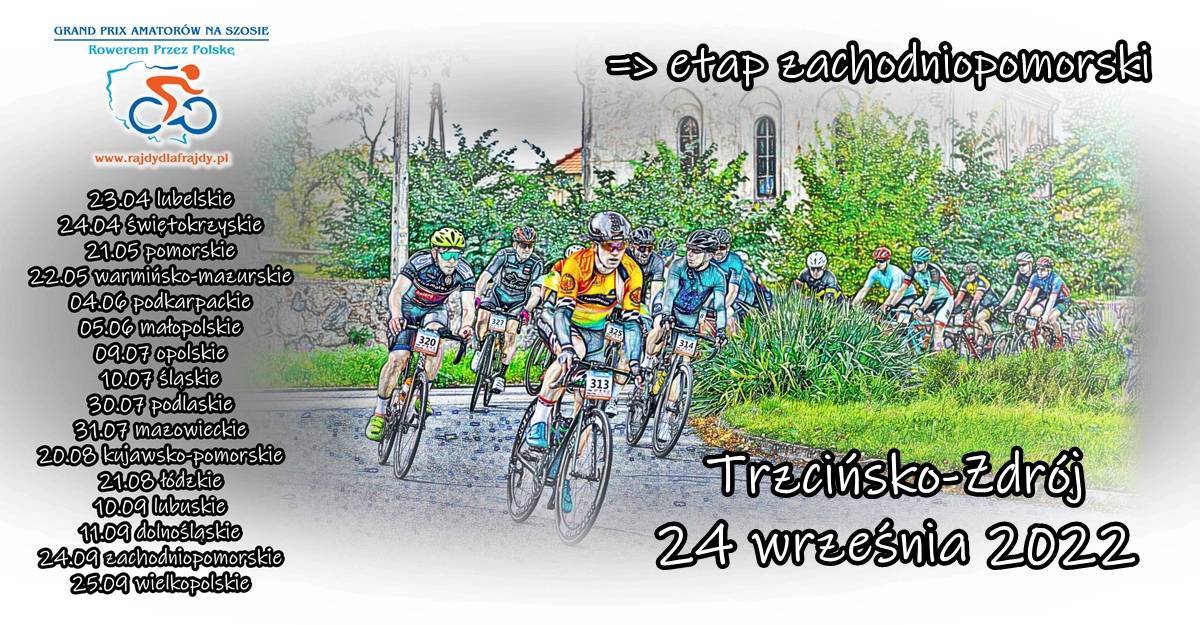Na zachodniopomorski etap cyklu „GRAND PRIX AMATORÓW NA SZOSIE – Rowerem przez Polskę” premierowo zapraszamy do Trzcińska-Zdroju! Będzie to początek finałowego weekendu VI edycji naszych rajdów, a więc i znakomita okazja by pokazać Wam coś nowego i niecodziennego :)