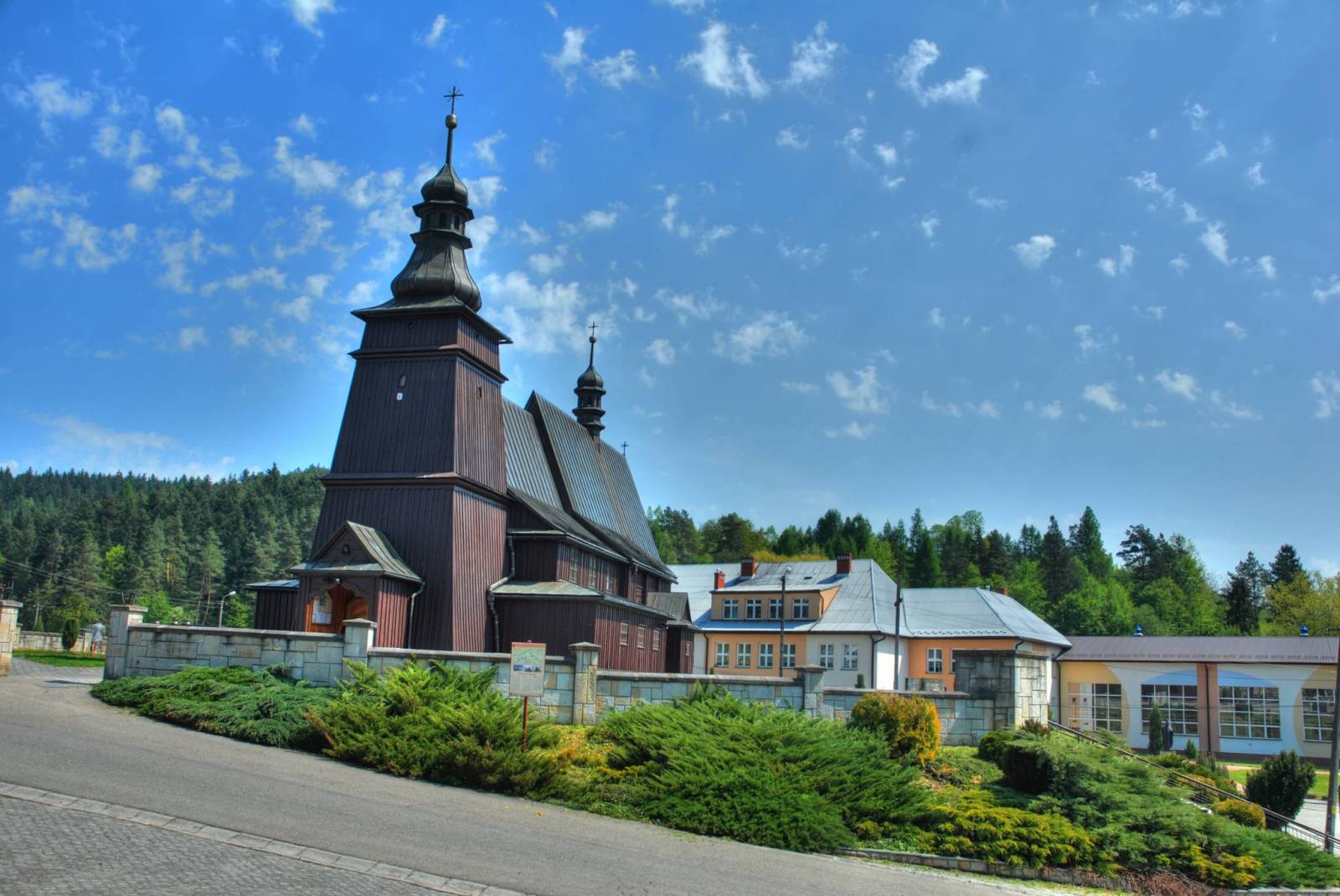 Celem wycieczki jest poznanie trzech najważniejszych miejsc kultu w gminie Ciężkowice. Trasa rozpoczyna się na parkingu przy Sanktuarium Pana Jezusa Miłosiernego w Ciężkowicach. Po zwiedzeniu kościoła i zapoznaniu się z historią jego najważniejszego elementu – barokowego obrazu Pana Jezusa Miłosiernego zjeżdżamy drogą w dół i docieramy do doliny rzeki Białej. Warto zatrzymać się na moście, aby poszukać wzrokiem przedstawicieli lokalnej fauny: kaczek, czapli czy też bobrów. Jadąc dalej, mijamy przetwórnię owocowo-warzywną, która odznacza się wysokim fabrycznym kominem. Zaraz obok znajduje się stary młyn. Skręcając w lewo, zobaczymy dworek I. J. Paderewskiego. Po drodze mijamy wieżę widokową, skąd możemy podziwiać piękno lokalnych krajobrazów. Jedziemy dalej i po 6 km docieramy do neoromańskiego kościoła – Sanktuarium NMP Wniebowziętej w Bruśniku, które słynie z XVI-wiecznego obrazu Matki Bożej z Dzieciątkiem. Miłośnicy fauny znajdą w tym kościele nie lada atrakcję: mieszkają w nim nietoperze podkowce małe. Następnie zjeżdżamy do Jastrzębi, gdzie naszym kolejnym punktem jest położony na Szlaku Architektury Drewnianej kościół pw. św. Bartłomieja. Trasa powrotna wiedzie przez miejscowości Kąśna Górna i Dolna (po około 5 km docieramy do budynku przetwórni, skąd wracamy do Ciężkowic tą samą drogą).