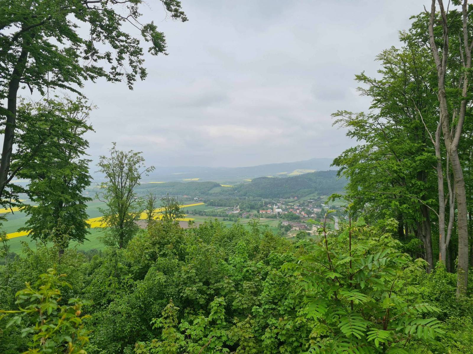 Dawno mnie nie było na Wapniarce , to taki szczyt koło Żelazna . Stoi tam drewniana wieża widokowa . Widać ,że ostatnio została poddana drobnej renowacji . Na wieże nie wchodziłem , ale widoki po drodze i tak fajne . Kwitną jeszcze rzepaki . Przejechałem częściowo kłodzką drogą Św Jakuba , to dobry wybór dla roweru