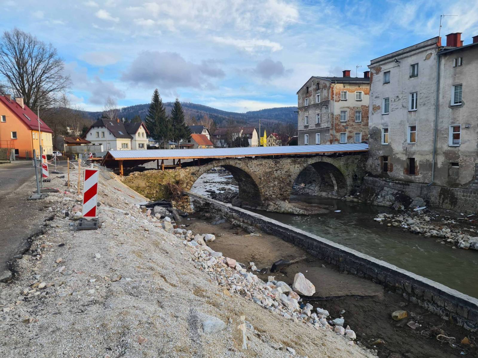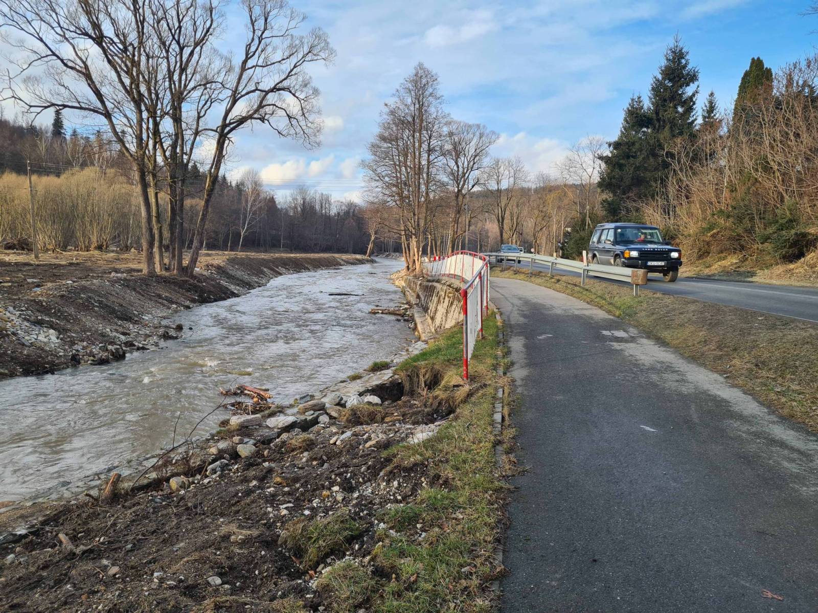 Końcówka stycznia a pogoda jakby marcowa . Śnieg zalega tylko w górach a niżej ciepło. Dziś trochę wieje wiatr , ale jest ciepły . Ruszam w stronę Lądka Zdroju a potem Radochowa . Ciągle jeszcze widać ślady po wrześniowej powodzi , ale większość dróg jest już przejezdna .