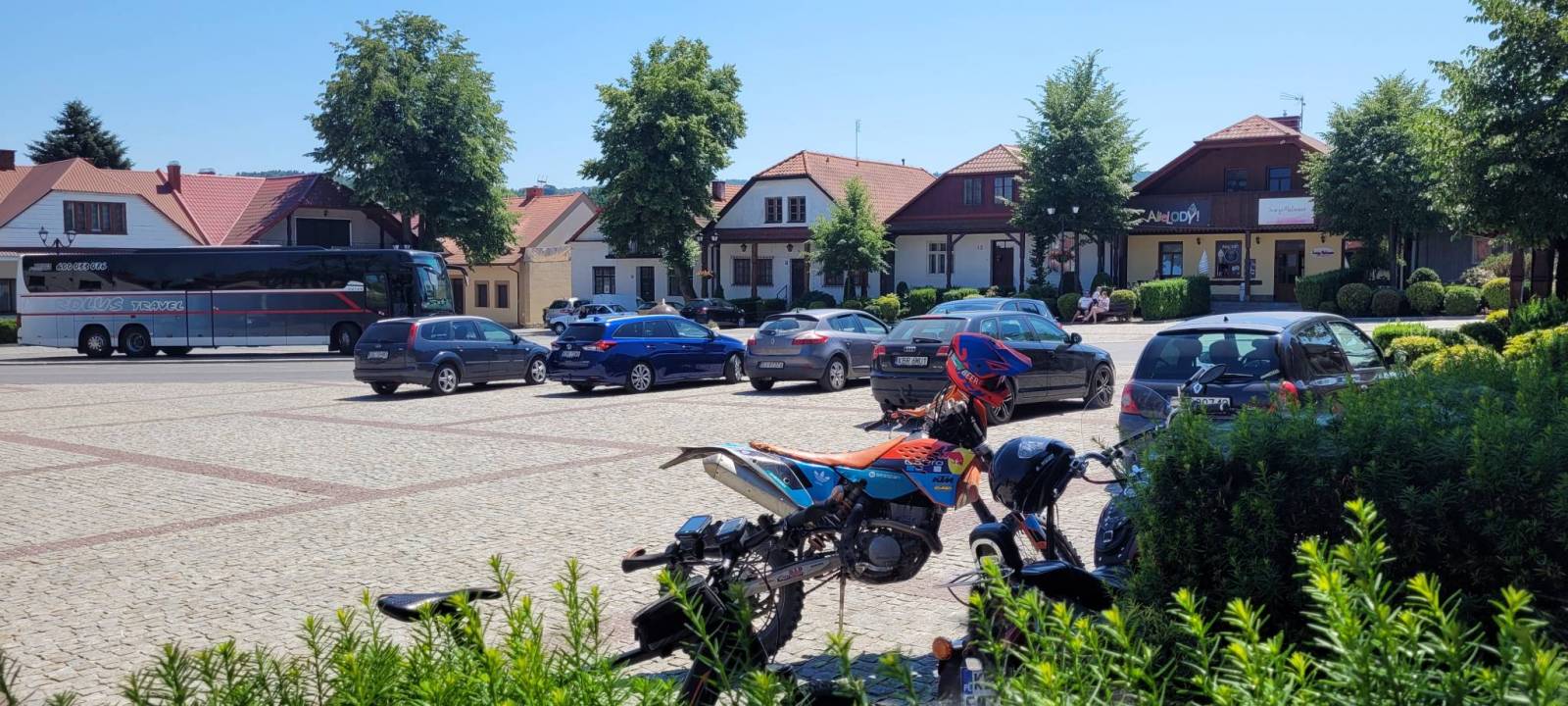 To mój ostatni odcinek trasy z Przemyśla. Trasa już wielokrotnie przeze mnie pokonywana ale nadal sympatyczna i widokowa. Przy 35 st upale odpuściłem sobie podjazd na Szpilówkę bo z gorąca mózg pod kaskiem się lasował. najgorszy przejazd na całej trasie to fragment czarnego szlaku przez las na zachodnim zboczu pasma Szpilówki. Makabra. reszta fajna widokowa ale o tym już pisałem wielokrotnie. Pry tym upale odpuściłem sobie przejazd przez Niepołomice do KRK. czas i moc jeszcze była ale robiłem tą trasę tyle razy, że przy tym upale było by to sztuka dla sztuki.