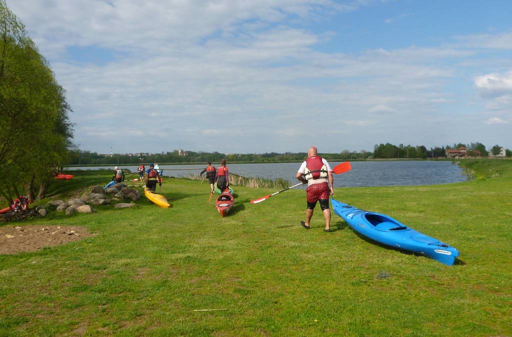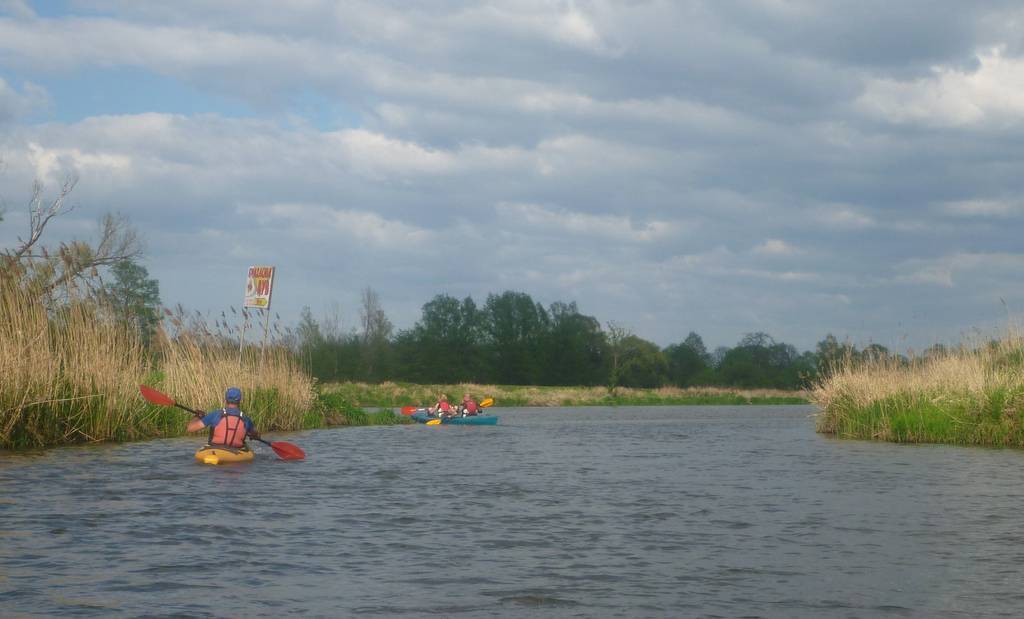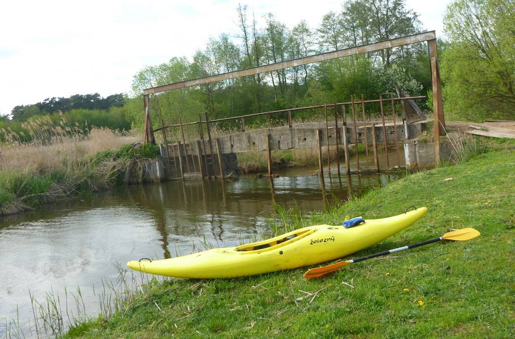 Na prawej odnodze jest MEW i przykra przenoska przez ogrodzenie stawów rybnych, chyba że mamy szczęście i furtka będzie akurat otwarta. Kajaki przenosimy aż za MEW i wodujemy z wysokiej skarpy. Długa prosta i dla chcących spływ zakończyć w Nowym Mieście, o wiele dalej pod prąd do piaszczystej plaży, na lewym brzegu Pilicy.