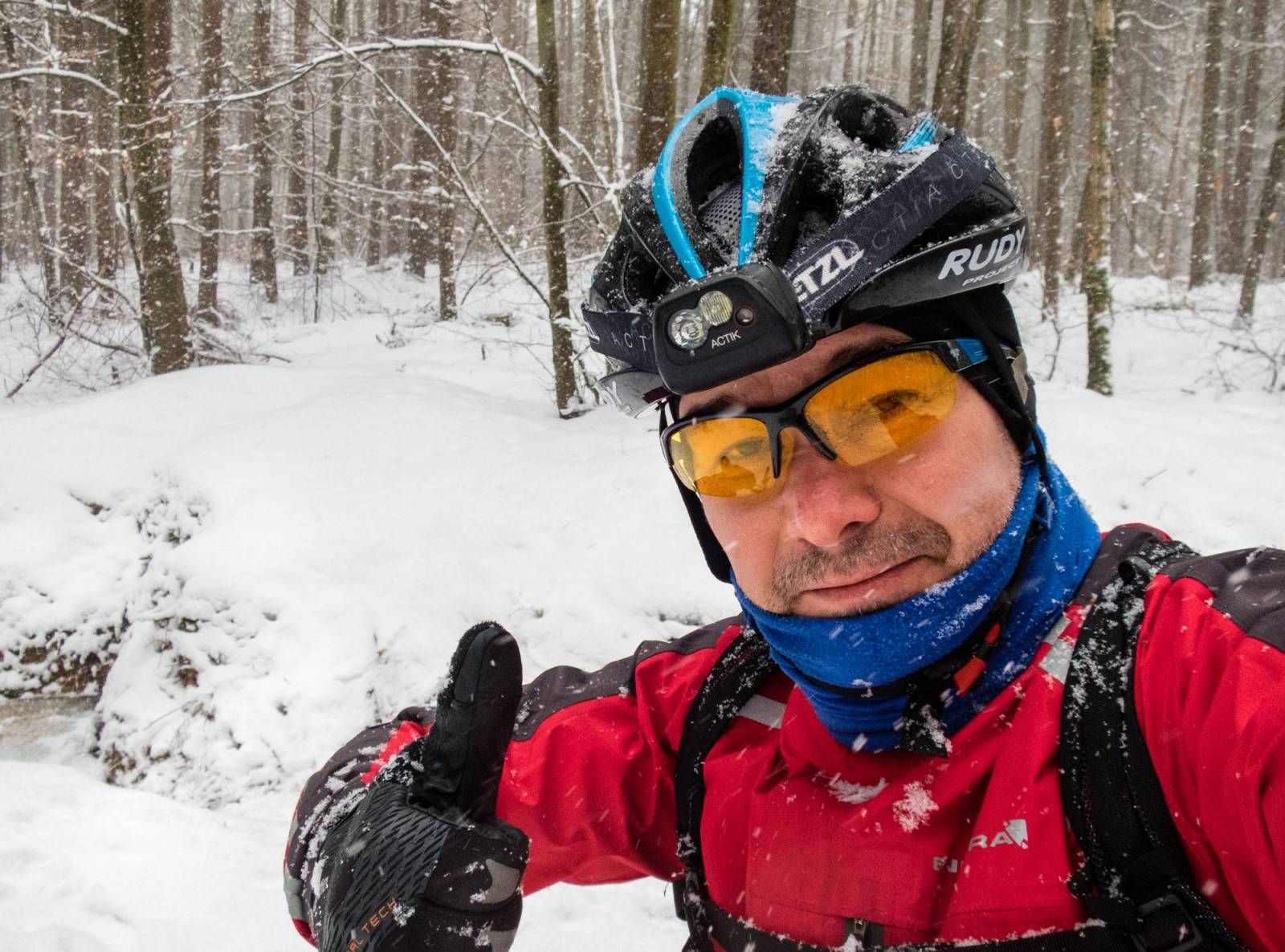 Chyba nigdy jeszcze nie jechałem w takich warunkach. Dziwne, że tylko jedną glebę zaliczyłem - i to przez zakryty śniegiem krawężnik. Padający śnieg zmoczył mnie jak nigdy i mimo dość krótkiej trasy wróciłem do domu mokry ;)