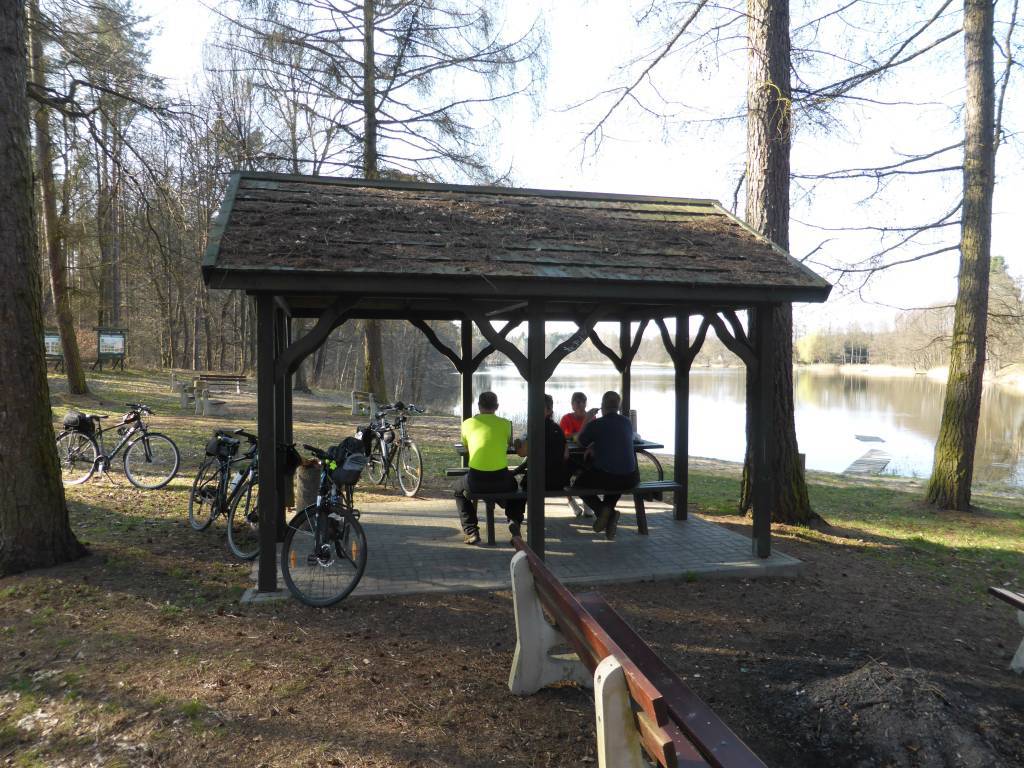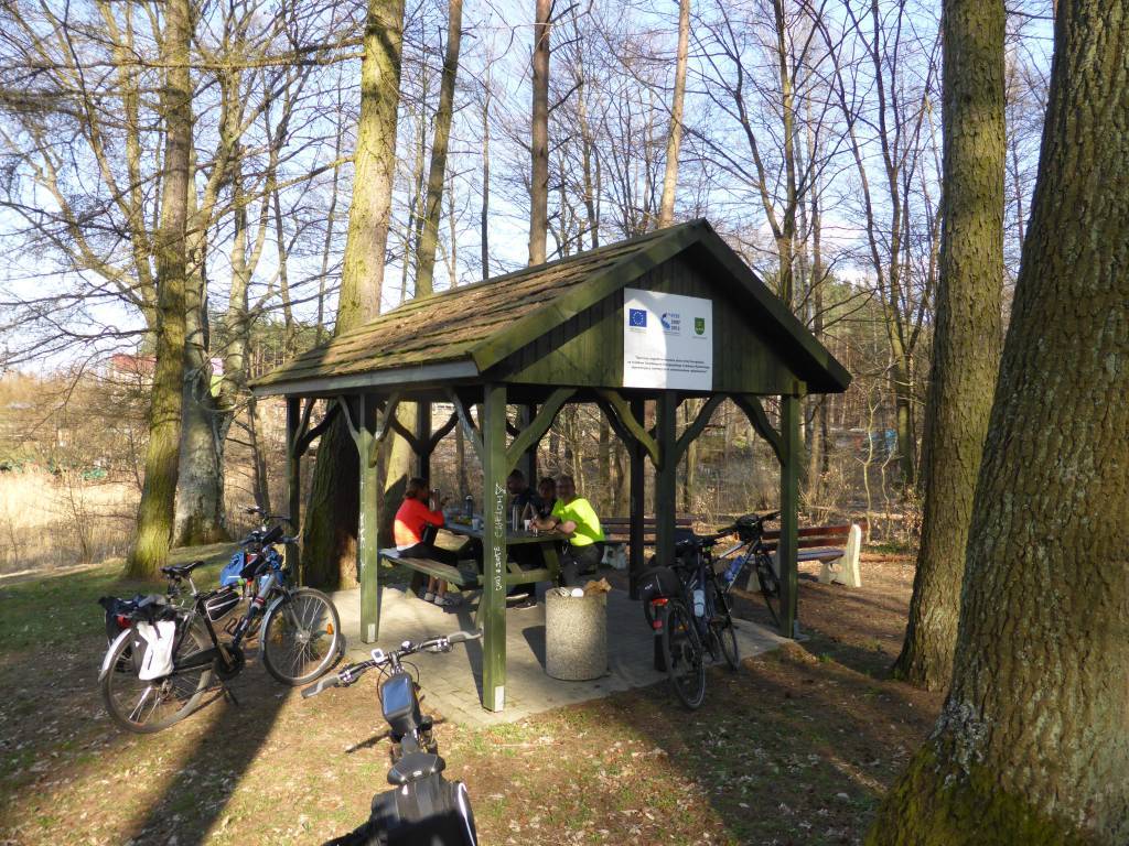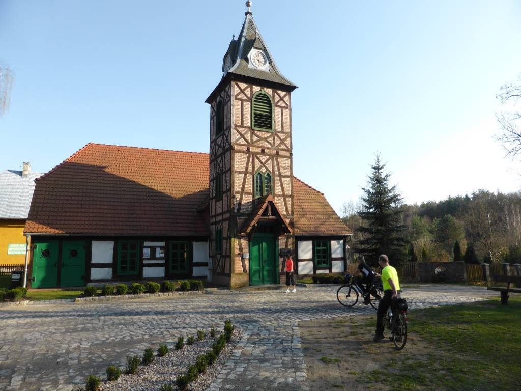 Trasa prowadzi obok malowniczej rzeczki Srebrnej, lasami i jeziorkami. Dojeżdżając do Santoczna, mamy parking rowerowy z wiatą i tablicami edukacyjnymi, miejsce na ognisko. Jedziemy do centrum Santoczna, wart uwagi jest kościół szachulcowy z XVIII wieku, który przebudowano z dawnej huty. W dobudowanej w 1819 roku wieży znajdują się dwa dzwony z berlińskiej pracowni ludwisarskiej. Można tu też zobaczyć XIX-wieczny dom pastora, ruiny dawnego młyna wodnego i kuźnicy żelaza, w której w XVIII wieku wykonywano drut, gwoździe i kartacze, a w 1785 roku wykonano niektóre elementy pierwszej niemieckiej maszyny parowej.