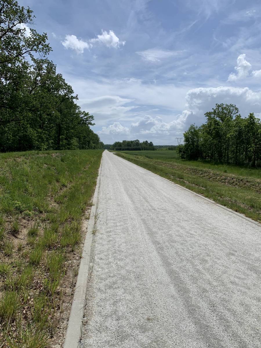 Trasa wiedzie ścieżkami rowerowymi po dawnej kolejce wąskotorowej, po koronie wałów oraz różnej jakości asfaltem i drogami szutrowymi.