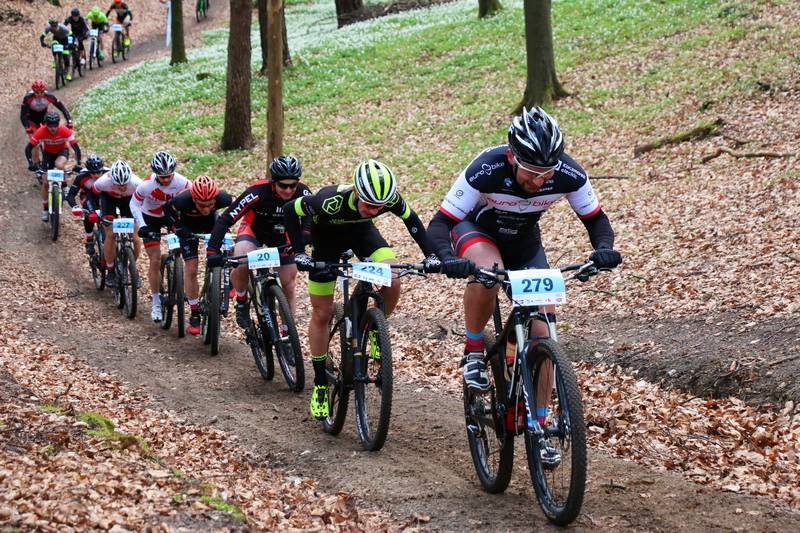 Zaczęło się od śniegu a potem pogoda była raz taka raz siaka ... z każdej pory roku. Liczba zawodników jadących na obu trasach była mimo kapryśnej pogody wyjątkowo duża. Zacząłem focić od atrakcyjnego podjazdu, który prawie cała grupa jadąca dystans Mega, czyli trzy okrążenia pętli liczącej 15 km pokonała na kołach. Trochę gorzej było z dystansem Mini (2 okrążenia) - lekko licząc połowa wchodziła, ale nie ma co się dziwić w końcu to początek sezonu i część bikerów jeszcze się nie zdążyła rozjeździć :)