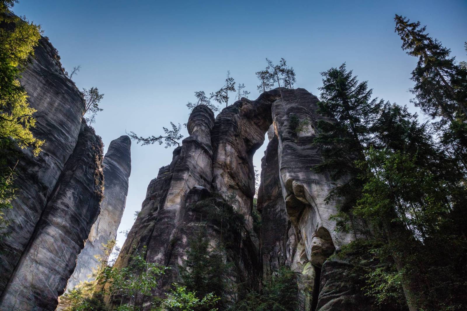 Mapa obejmuje bardzo atrakcyjną turystycznie czeską część Gór Stołowych. Podobnie jak w polskiej części masywu, także ten region obfituje w przeróżne ciekawe formacje skalne. Ciekawym szczytem Broumowskich Ścian jest leżąca nieopodal Koruna z punktem widokowym i interesującymi formacjami skalnymi na szczycie, natomiast za największą atrakcję uchodzi góra Hvězda (674 m n.p.m.), na której szczycie, na skalnej krawędzi, znajduje się barokowa kaplica Matki Boskiej Śnieżnej, wykonana z piaskowca ciosowego (zbudowana na podstawie pięcioramiennej gwiazdy). Miasta skalne znajdujące się w Adršpašskoteplickich skálach są jednym z najbardziej znanych piaskowcowych terenów wspinaczkowych na świecie. Między labiryntami form skalnych przebiega płatna trasa turystyczna niewymagająca żadnej wprawy przy chodzeniu po górach, składająca się z wygodnych schodków, poręczy, drabin i miejscami sztucznie wybudowanych chodników i platform. W pobliżu znajduje się też Teplickie Skalne Miasto – nieco mniej znane od Adršpašskoteplickich skál, lecz rozleglejsze, wyższe i bardziej dzikie.