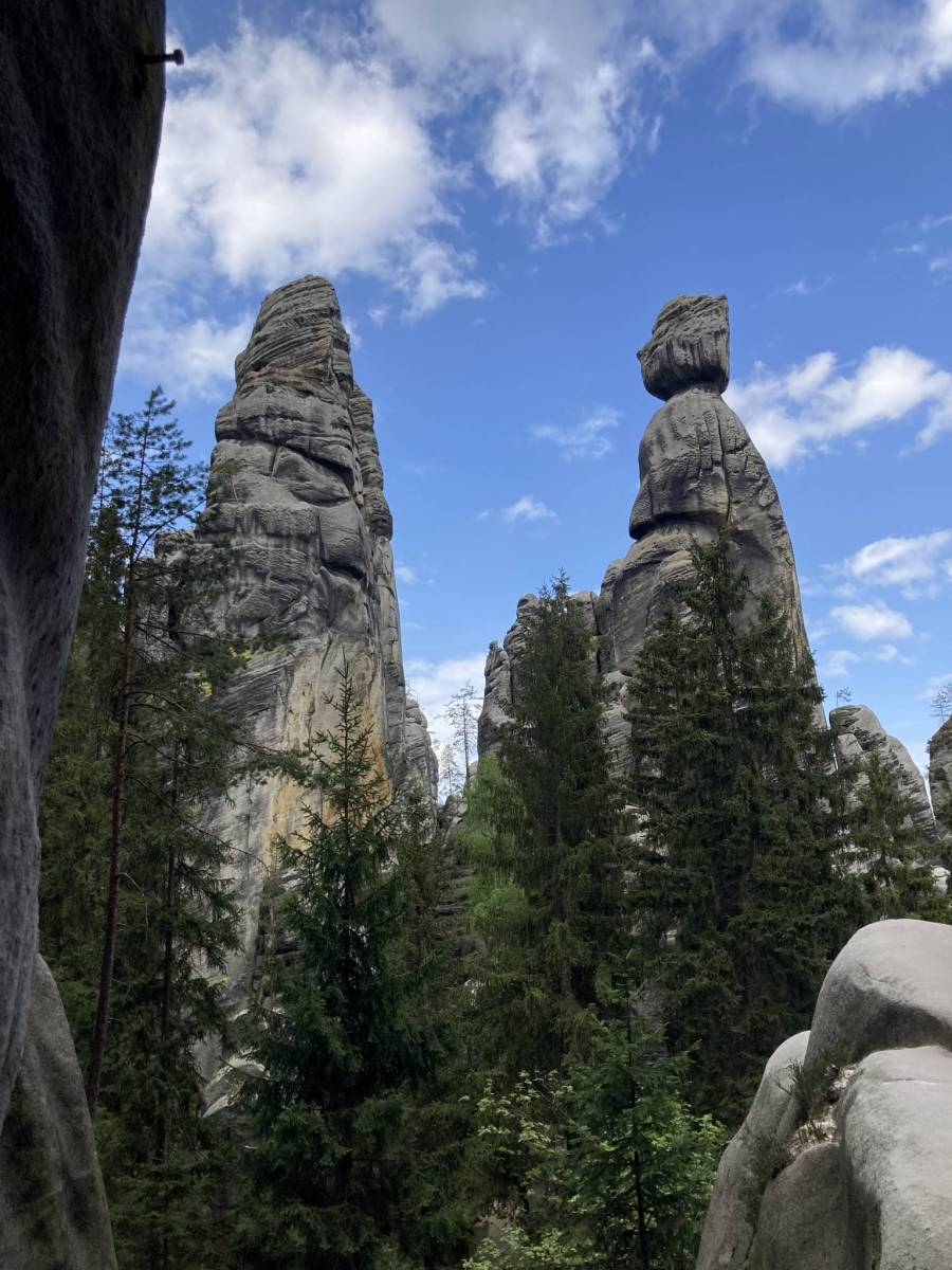 Mapa obejmuje bardzo atrakcyjną turystycznie czeską część Gór Stołowych. Podobnie jak w polskiej części masywu, także ten region obfituje w przeróżne ciekawe formacje skalne. Ciekawym szczytem Broumowskich Ścian jest leżąca nieopodal Koruna z punktem widokowym i interesującymi formacjami skalnymi na szczycie, natomiast za największą atrakcję uchodzi góra Hvězda (674 m n.p.m.), na której szczycie, na skalnej krawędzi, znajduje się barokowa kaplica Matki Boskiej Śnieżnej, wykonana z piaskowca ciosowego (zbudowana na podstawie pięcioramiennej gwiazdy). Miasta skalne znajdujące się w Adršpašskoteplickich skálach są jednym z najbardziej znanych piaskowcowych terenów wspinaczkowych na świecie. Między labiryntami form skalnych przebiega płatna trasa turystyczna niewymagająca żadnej wprawy przy chodzeniu po górach, składająca się z wygodnych schodków, poręczy, drabin i miejscami sztucznie wybudowanych chodników i platform. W pobliżu znajduje się też Teplickie Skalne Miasto – nieco mniej znane od Adršpašskoteplickich skál, lecz rozleglejsze, wyższe i bardziej dzikie.