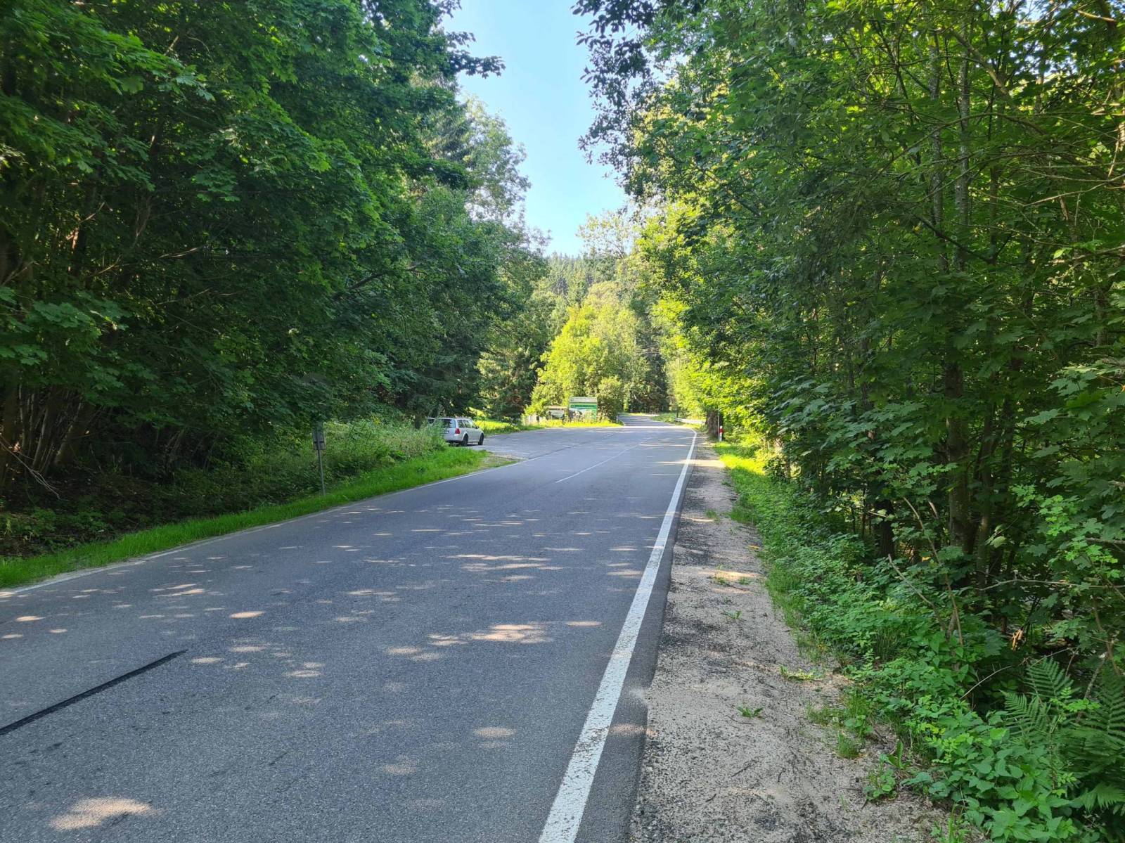 Kolejny dzień upału . Ruszam w góry . Po raz kolejny Skowronia Góra , miejsce które chyba się nie znudzi . Ciężki podjazd po przełęcz Puchaczówka a potem zjazd w kierunku Bystrzycy Kłodzkiej . Przy kaplicy Św Anny w prawo i do maleńkiej wioseczki Marcinków . Tym razem pomijam ruiny kościoła i żółtym szlakiem dojeżdżam do Romanowa i dalej asfaltem do Stronia Śląskiego .