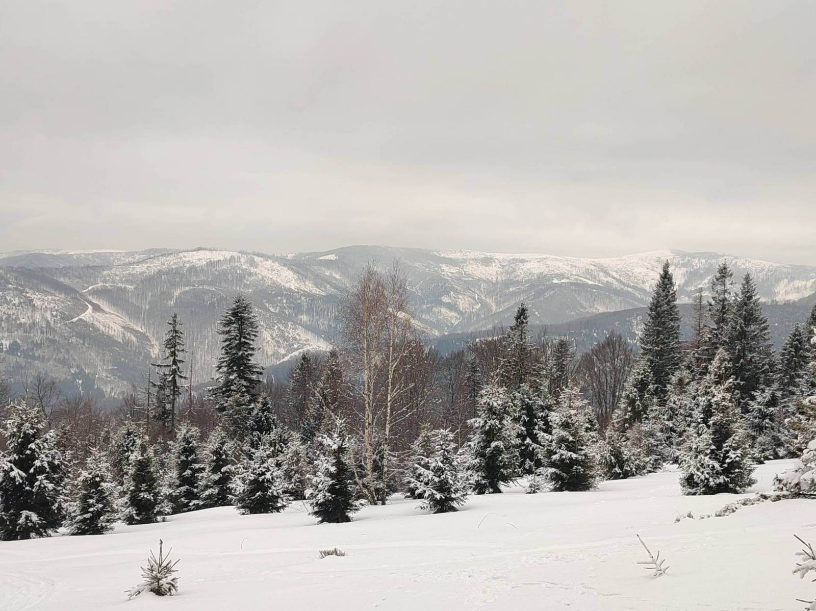 Trasę na Skrzyczne zaczynam na bezpłatnym parkingu w Lipowej Ostre. Dość stromo zaczynam podchodzić szlakiem zielonym, który prowadzi bezpośrednio na szczyt Skrzyczne. Jak się okazuje to jest jedyna trudność na trasie. Po krótkim postoju w schronisku ruszam dalej szlakiem zielonym w kierunku Malinowskiej Skałki. Do parkingu schodzę szlakiem żółtym, który w znacznej części przebiega wzdłuż potoku Leśniczanka. Mimo dużej ilości śniegu, trasa była dość łatwa, jedynie na zejściu wystąpił dość długi zalodzony odcinek, na którym dla bezpieczeństwa warto założyć raczki.