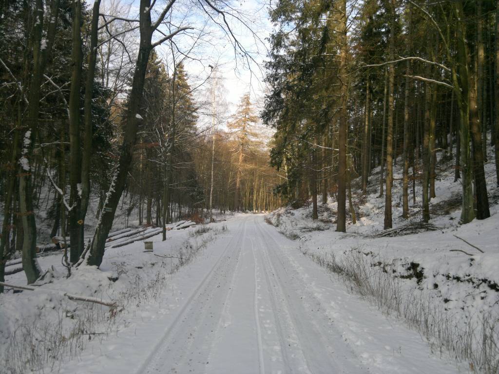 Przy drodze widzimy okazałe świerki i daglezje. Wkrótce spotykamy szlaki turystyczne „czarny” (Sopot – Kamienica Królewska), „niebieski” i „zielony”, by wspólnie z tymi ostatnimi pokonać fragment trasy.