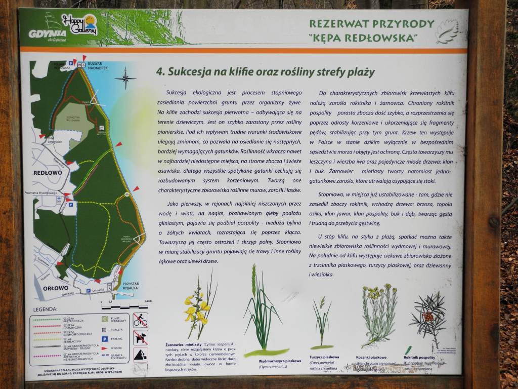 Wycieczka piesza do Rezerwatu Kępa Redłowska. Trasa prowadzi brzegiem morza a później szlakiem leśnym. Po drodze pozostałości SD 32 Dywizjonu Artylerii Nadbrzeżnej.