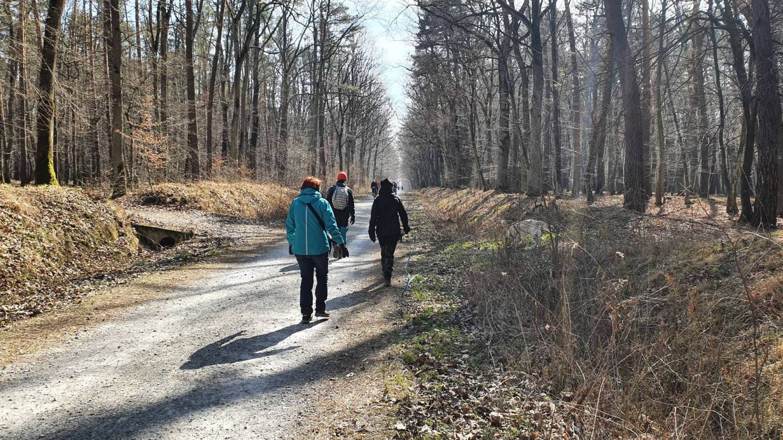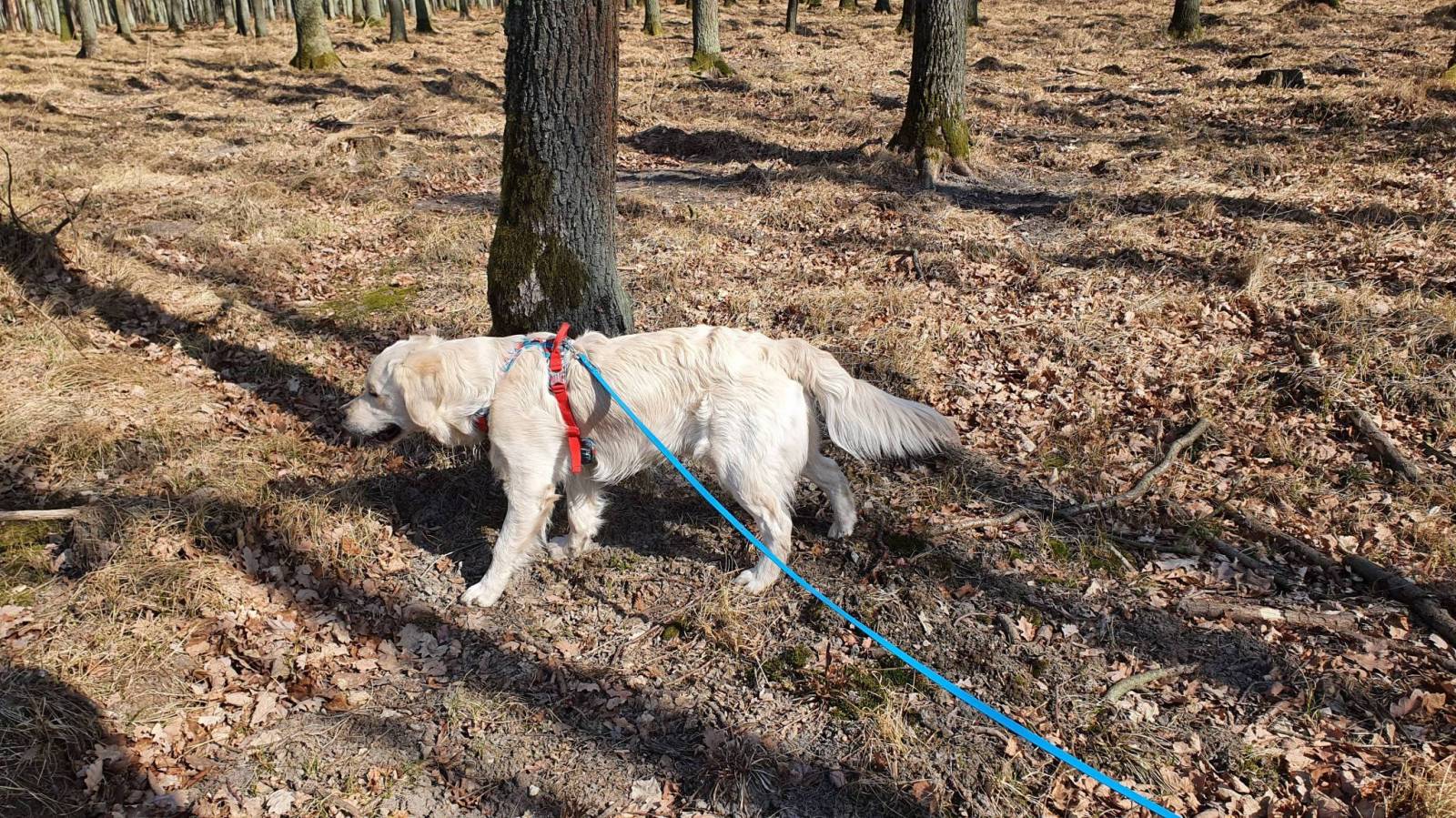 Jeszcze trochę mokro na terenie puszczy ale ścieżki dobrze są przygotowane zatem spokojnie można planować spacery. Chcieliśmy trochę mniej uczęszczane dróżki bo nasz pies młody jeszcze i chociaż szybko się uczy ma dużo emocji i z każdym chce się serdecznie witać a nie każdy tego potrzebuje zwłaszcza jak łapy brudne. Tak było trochę mokro na bocznych ścieżkach ale atrakcja nie mniejsza.