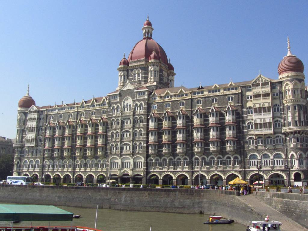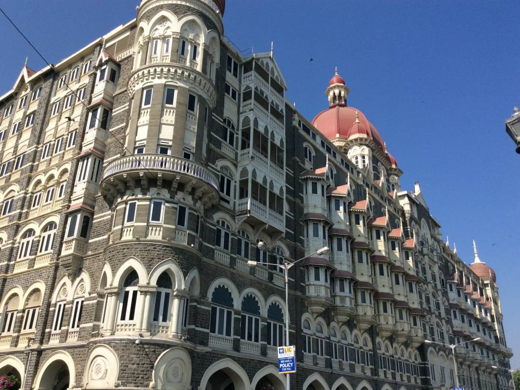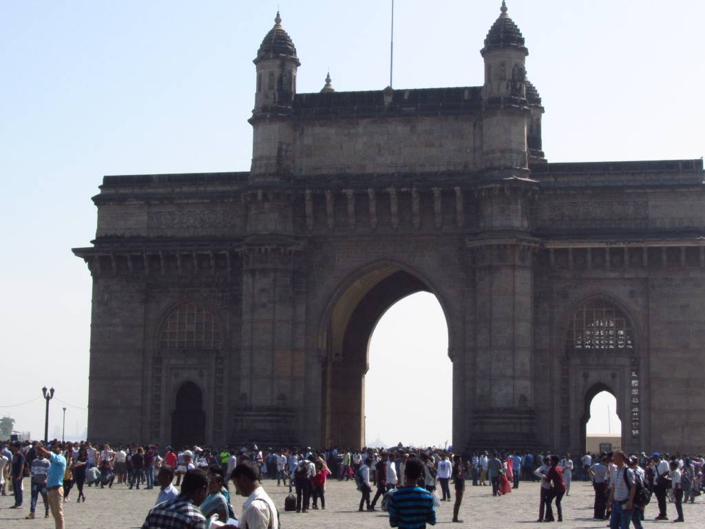Spacerek przez Poludniowy Bombaj - Colaba, najbardziej "turystyczna" czesc miasta z najbardziej znanymi obiektami - Luk Triumfalny "Wrota Indii" (Gateway of India) i Hotel Taj Mahal Palace (obiekt zamachu terrorystycznego w 2008 r.).