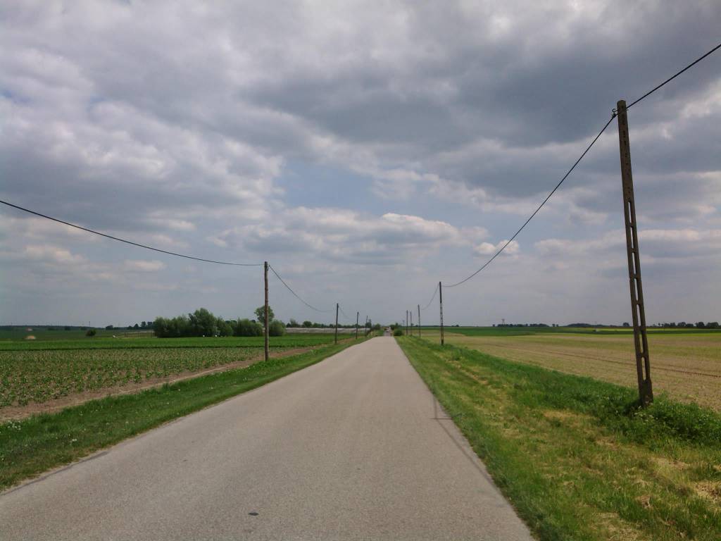 Co za nudna droga. Nawet nie mam o czym pisać. Widziałem jeden ślub, a po nim korowód aut, przejechałem po dziesiątkach dziur, które w Kujawsko-Pomorskiem są wyjątkowo zapowiadane stosownymi znakami na każdym skrzyżowaniu. Martwiłem się ciągle, o której godzinie dojadę do Włocławka i czy uda mi się go dzisiaj zwiedzić. Pewnie się też opaliłem, bo słońce w końcu wyszło zza chmur. Chyba jednak dzisiaj nie będzie padać.