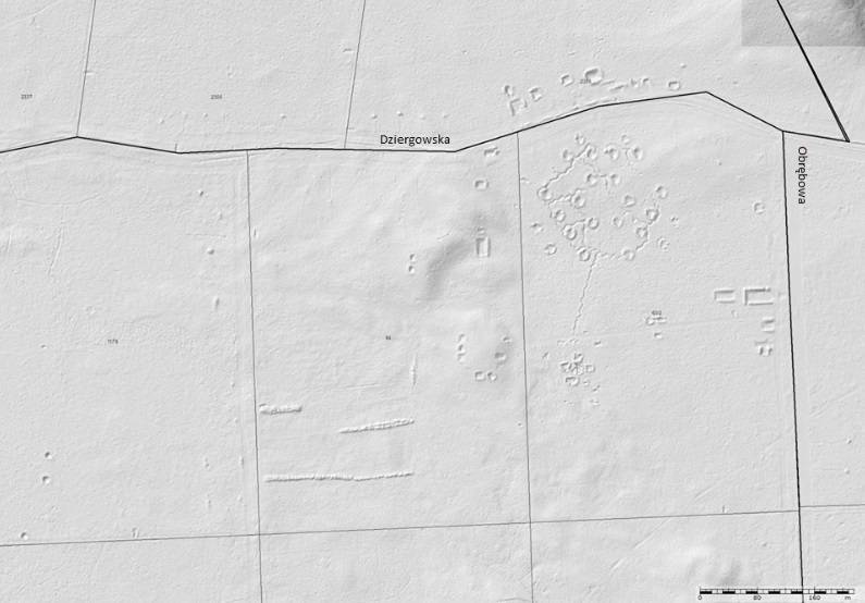 KuzniaWsiodełku.pl poleca Jedziemy drogą BARACHOWSKA cały czas prosto asfaltem. Podziwiamy pięknie odbudowany las po pożarze w 1992 roku. Skręcamy w lewo w drogę Obrębową. (1) Dojeżdżamy do skrzyżowania z drogą Dziergowską. W tych okolicach było kiedyś stanowisko obrony przeciwlotniczej. (2, 3, 4, 5, 6, 7 zdjęcie przedstawia to mapa z geoportalu.pl) Jedziemy w lewo. Na skrzyżowaniu z drogą Od Lotniska skręcamy w lewo i „rollercoasterem” jedziemy znowu prosto. Mijamy „lotnisko”. Na kolejnej krzyżówce skręcamy w prawo na asfalt. (8) Jedziemy teraz w stronę startu naszej wycieczki.