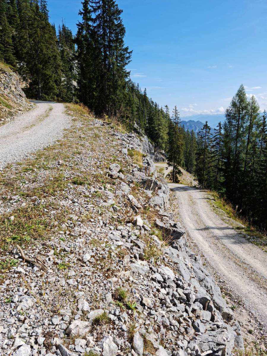 Z punktu wyjścia przy dolnej stacji kolejki gondolowej Hauser Kaibling jedzie się boczną drogą do spokojnego Weißenbach, skąd dalej asfaltowymi i szutrowymi bocznymi drogami w kierunku Rössing. Po krótkim odcinku na głównej drodze podążamy pięknym odcinkiem przez las, mijamy Silberklamm, a następnie docieramy do leśnej drogi prowadzącej do Storn Alm.