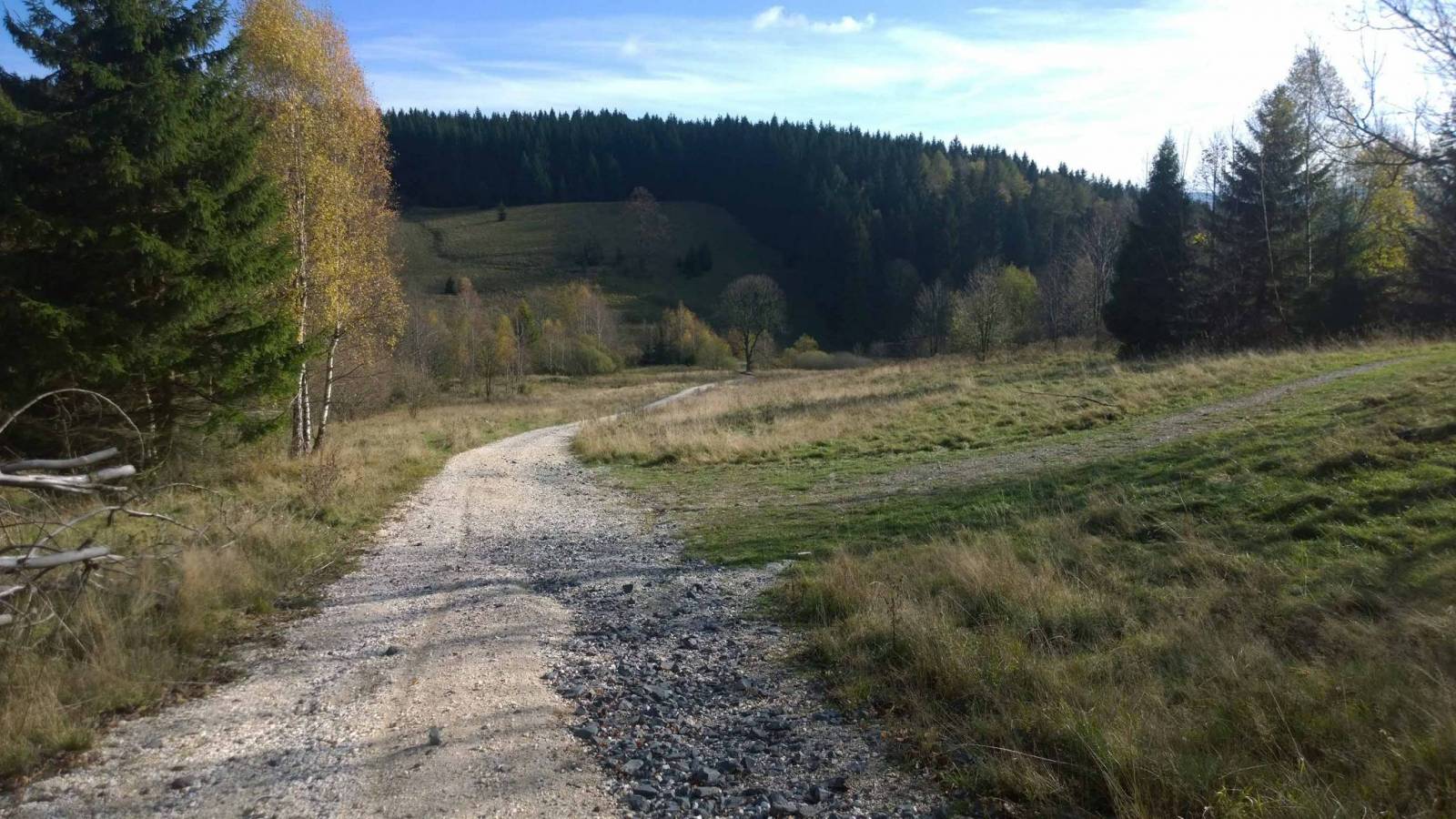 Krótka wycieczka po okolicy . Głównie drogami szutrowymi , kawałek drogami asfaltowymi ale o małym natężeniu ruchu . W słońcu dość ciepło , ale czuć już powiew zimna . Na trasie fajne widoki , zamek w Javorniku , wieża widokowa na Górze Borówkowej i kościół w Wrzosówce