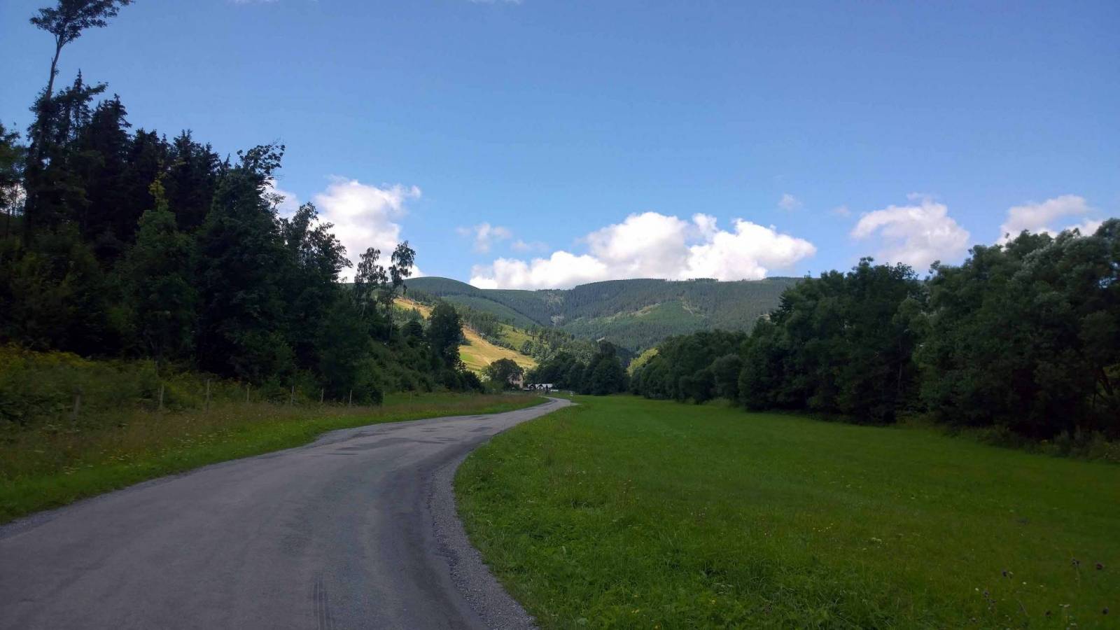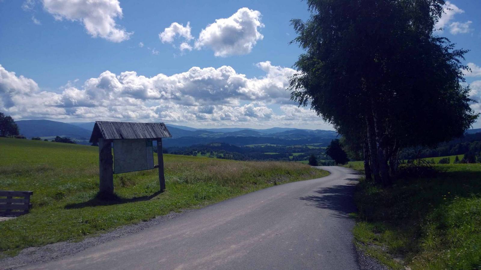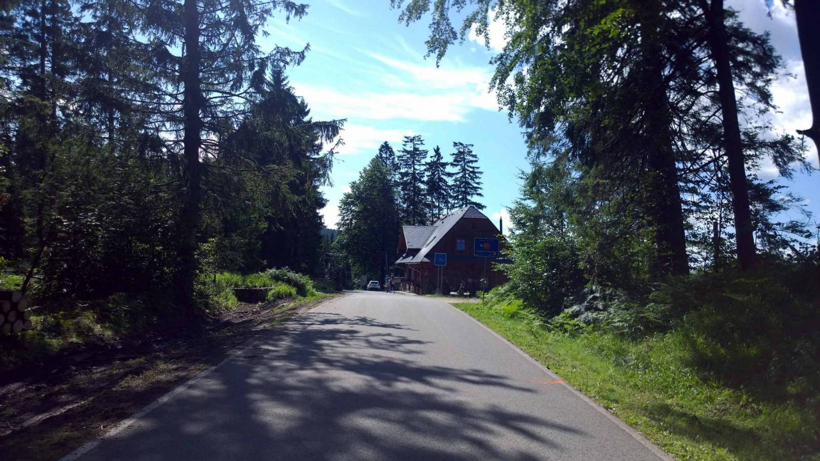 Wycieczka po okolicy . Głównie asfaltowymi , ale mniej uczęszczanymi drogami . W okolicy Stribrinic drogi szutrowe , dość trudne podjazdy . Widoki piękne , nie koniecznie z samej wieży widokowej . Nie jestem miłośnikiem wież a ta wg mnie zupełnie "nie powala ". Potem przejazd do Chaty Navrsi . Jest tu jak zwykle sporo ludzi . W górskiej chacie obiad i coś do picia :) .