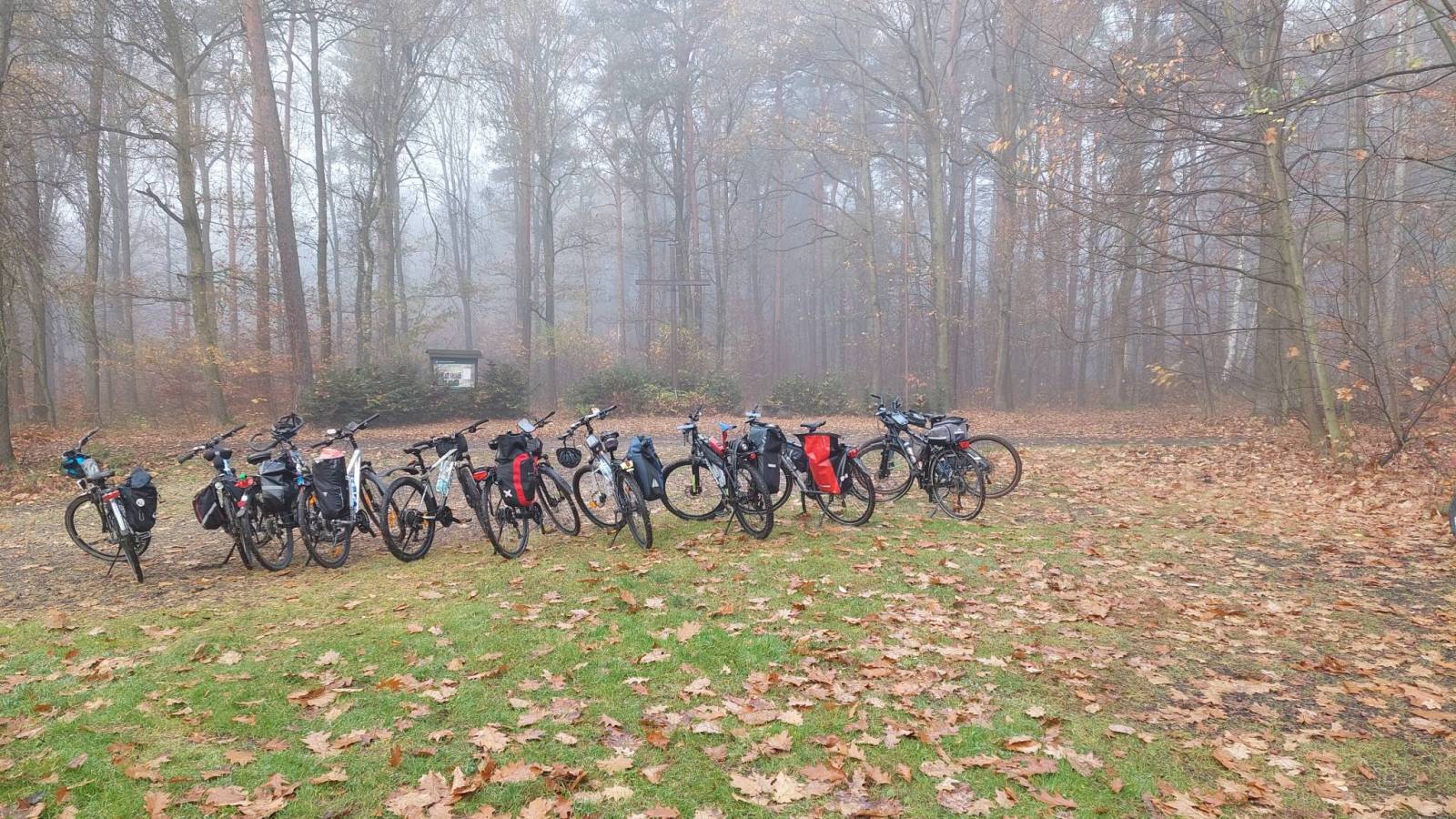 Listopadowa wycieczka ,w porannej gęstej mgle i temperaturze około 2 st.C. Głównie lasami przez Tychy nad Jezioro Paprocańskie i dalej przez Kobiór do Wyr.Tu obiadek z grupą i wyjazd do Mikołowa.Po obejrzeniu centrum miasta i kilku fotkach ruszamy doliną potoku Jamna do Rudy Śląskiej i dalej do Świętochłowic.
