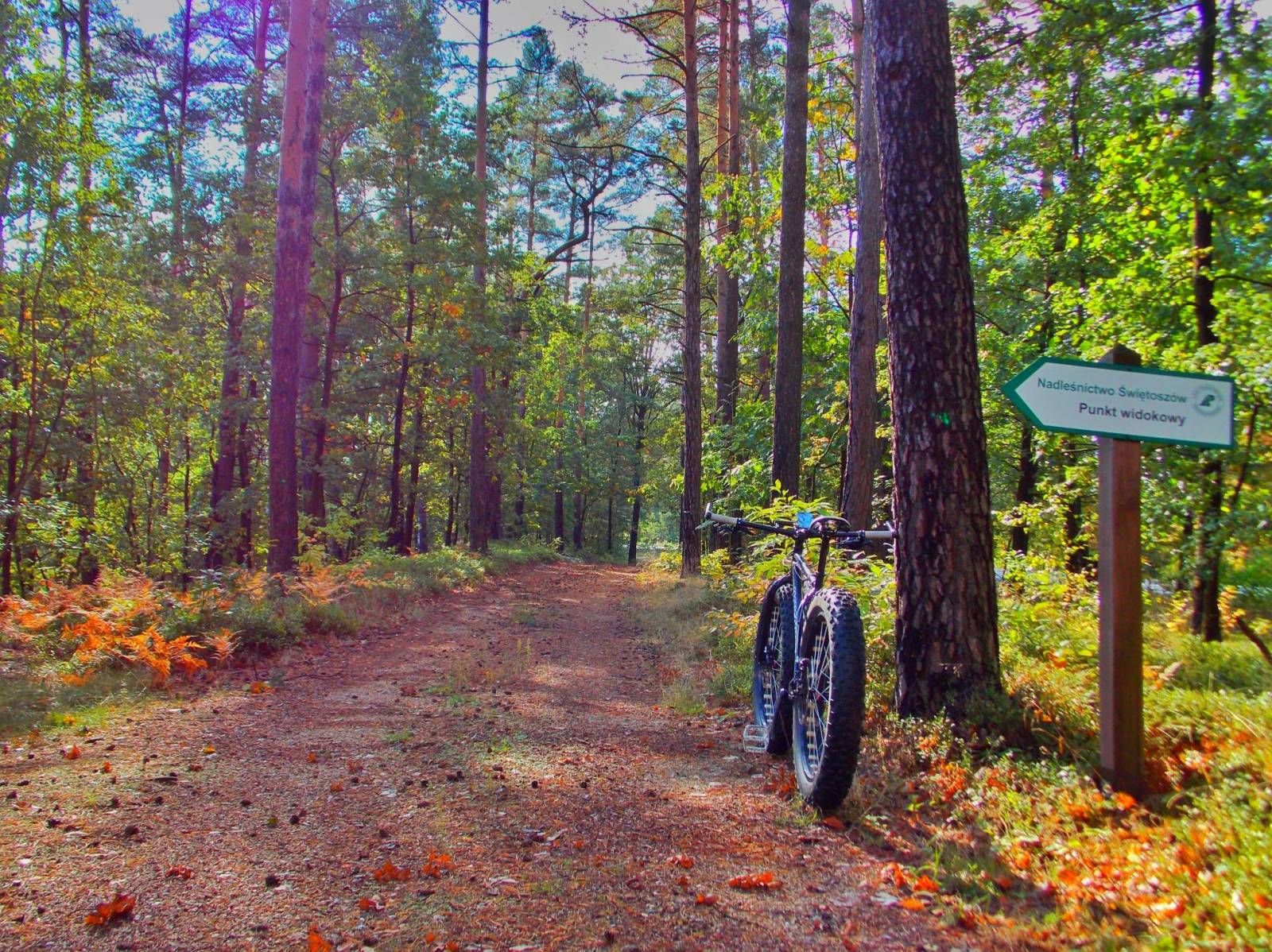 Żeby nie popaść w rutynę tj ile można straszyć kopalnie i ich obsługę :D Wszędobylskie faty wybrały się znowu na poligon zaimplementować musztrę. Od pewnego czasu chodził mi po głowie Poligon Przejęsław i tak też się stało. Myślę sobie, a co tam najwyżej znowu będą strzelać jak w sąsiednim :) tylko z grubej rury łupali. Nie dobre chłopaki :D Rozbiliśmy obóz w Świętoszowie na parkingu przy moście nad samą Kwisą. Uzbrojenie standardowe, grube gumy, kapok, jakaś woda, tylko teraz Justyna Adamska zabrała gaśnicę :D trza się czymś bronić jak klony rambo zaczną wylatywać z chaszczy. Ale po kolei. Pierwsze ileś set metrów to zasadniczo czyste zabójstwo zastanych mięśni ale to szybko przechodzi i zamienia się w stan "no jak cudownie kochanie" wpadamy na pierwszy punkt widokowy, a zapomniałem że lecimy na południe kierunek Ławszowa. Na dole patrząc tam z tego punktu brakuje mi tam wody. Justyna Adamska coś tam mruczy że no za mało. Mówię nie martw się dzisiaj jak huknie to będzie tylko błysk i nadmiar wody. :D Nikt nie wie ile z UWAGA półtora miliona niewypałów znalezionych na tym poligonie zostało jeszcze w ziemi :) . Szlakiem się pięknie leci. Po drodze jeszcze dwa punkty widokowe i przejeżdżamy na drugą stronę szosy na mały przedsmak tego co będzie potem. Potem był stary most kolejowy, potem było brak szyn (pewnie ktoś pożyczył) a potem STOP ... wjeżdżamy na poligon. Mimo uprzedzenia że jest nieczynny usilnie szukamy tablic teren wojskowy itepe itede ;) Nie było. Przygoda własnie się zaczyna. Poligon Przęjęsław to kilometry piaszczystych dróg, duktów, ścieżek. Są też drogi utwardzone tzw dojazdy pożarowe, Jak zawsze traktuję je jak dojazd do moich dzikich odstępów. Robimy około 15 km po piaseczku zostawiając sobie wisienkę (bunkry) na inny wypad. Tym razem wiem z czym się je ten teren. Ale nie bierz ani niebieskiej ani czerwonej pigułki ten teren objedzie tylko fat. Wypadamy po za poligon w jak by zupełnie inny świat. To świat wypełniony paprociami, lasami mieszanymi, jeziorkami. Tutaj jest zupełnie inaczej. Ten las winduje wysoko w moich statystykach prawie na czoło pierwszej dziesiątki (zastanów się czy nie zażyć pigułki która pozwoli ci zostać w tej krainie czarów ;)) Dalej już był tylko coraz bardziej sympatycznie. Przypadkowo odkryta wiata z miejscem na ognisko, grill, stoliki ławy (patrz galeria i patrz traseo jako lokalizacja) coś niesamowitego. Po krótkiej przerwie lecimy dalej. Po kilku lewo prawo leśnych przygód wypadamy na most nad autostradą i znowu znikamy w bezkresach zieleni. Tutaj nikt nas nie znajdzie, Oczywiście nie było by inaczej gdyby nie podokuczało się trochę wojakom wjeżdżając tuż pod ich nosem na teren czynnego poligonu artyleryjskiego (podpowiem że dziś nie strzelali). Charakterystyczny pas wyciętego lasu tzw "pole robocze" to autostrada dla pojazdów gąsienicowych - dosłownie. Niedziela wojak leniwy wiec my jedziemy dalej. Finał wyprawy to ciekawe odkrycie starej wieży ciśnień ahhh ten ząb czasu. Ta wieża lepie wygląda niż ja się czuję ;) Finalizując. Teren samego poligonu jest niezwykle atrakcyjny jednak bardzo obfity w piaszczyste drogi. Zauważ na śladzie że jechaliśmy nie raz NIE po szlaku a to z reguły były mega piach albo zarośnięte po szyję. Tak lubimy to zwiększa nasz sklil przygody tak kochamy się zapodziewać. Są też drogi ubite tzw dojazdy pożarowe jednak to już dla mnie nie to samo. Nie mniej jednak polecam bardzo czy pieczo czy rowerem śmiało poligon jest nieczynny i otwarty na turystykę.