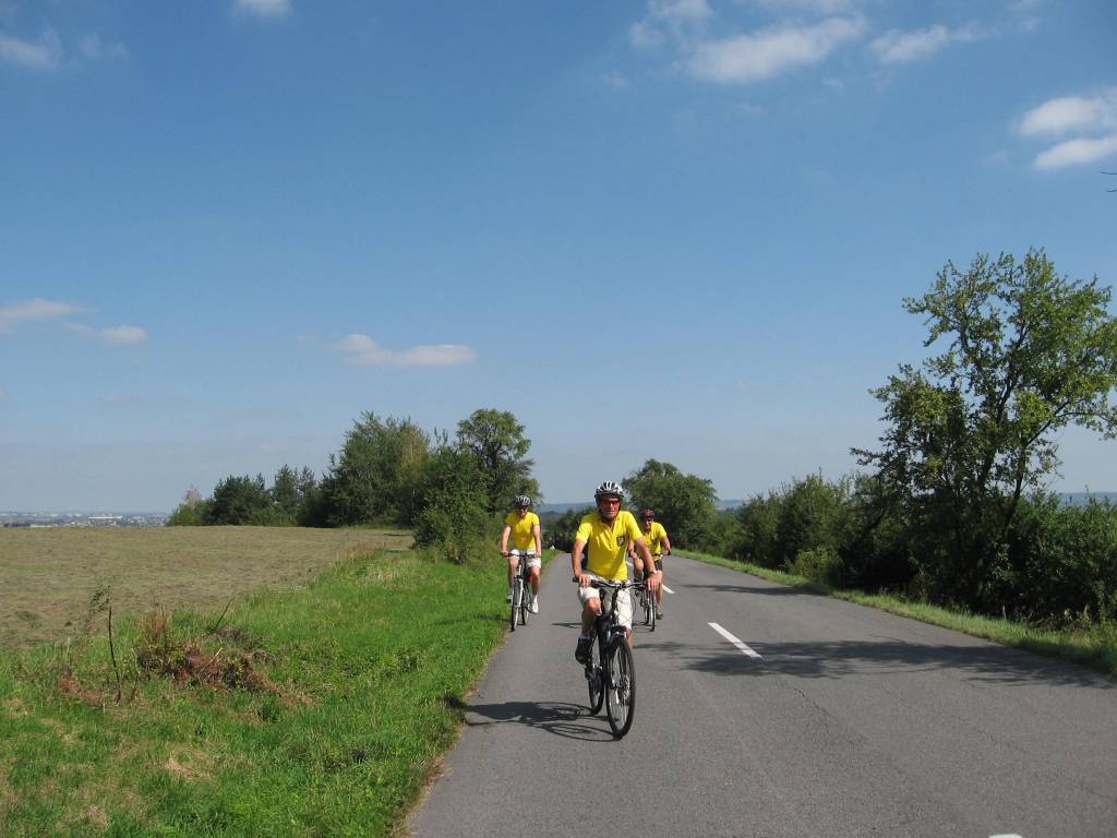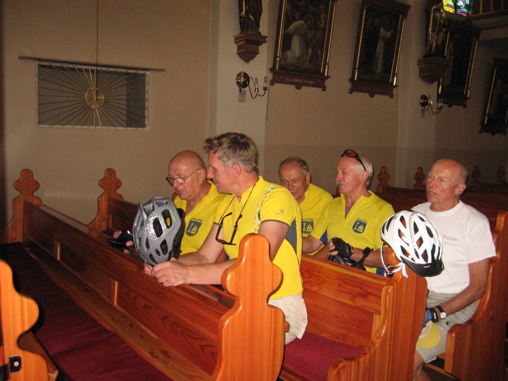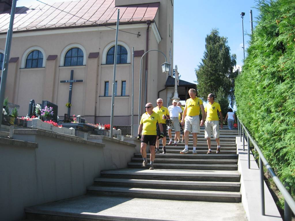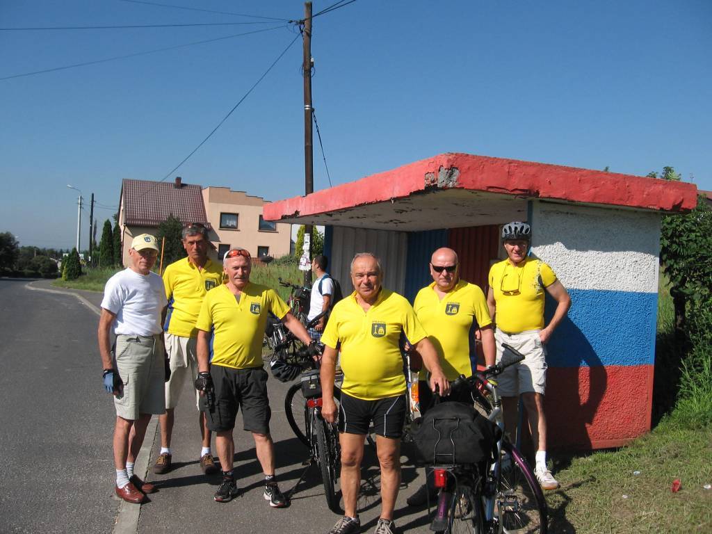 Spotkaliśmy się jak zwykle na "rynku" w Syrynii. W Owsiszczach zwiedziliśmy kościół i cmentarz, na którym Zygmunt zrobił nam prelekcję o bitwach prowadzonych na tym terenie podczas II wojny światowej. Pokonując ostre podjazdy dojechaliśmy do Hluczina, które okazało się ładnym miasteczkiem z ciekawym ryneczkiem.W miejscowej "ksiegarni" Heniek był tak zachwycony pianką, że tak długo ją fotografował, aż połowa jej znikła. Później pojechaliśmy na kąpielisko, żeby zażyć kąpieli słonecznych na plaży nudystów. Nie wiem czy brak odwagi lub wysokie ceny wstępu sprawiły, że nikt nie poszedł się kąpać. Droga powrotna przez Stary Bohumin i Meandry Odry była ciekawa i wymagająca. Rozstaliśmy się w Olzie żałując, że nie było z nami Antka G., który na pewno by nas namówił na kąpiel w Hluczinie.