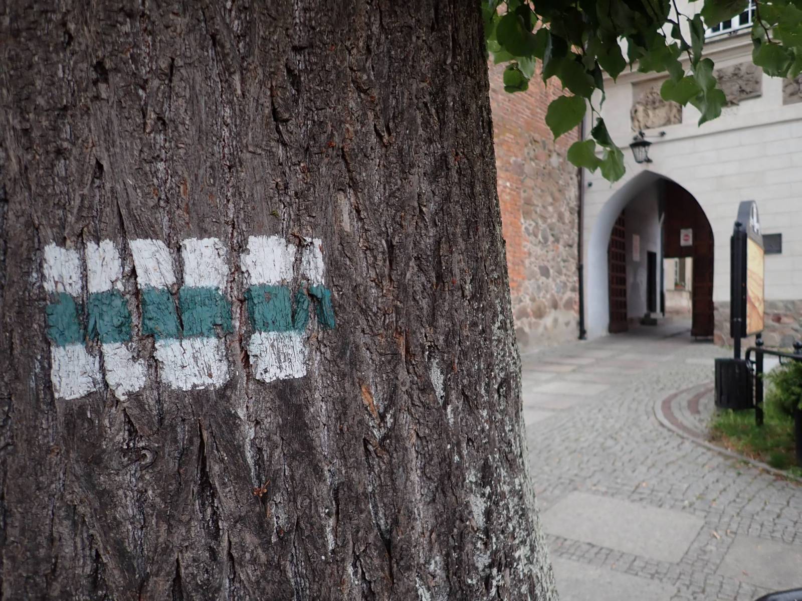 Szlak Kotła Świdwińskiego (Świdwin) - Pieszy Zielony ver. 2021. Szlak zaczynający się w okolicy dworca PKP Świdwin (choć kropki nie znalazłem) a kończy tuż przy zamku w Świdwinie(prawie pętla). Szlak z mocno zanikającym oznakowaniem w jednym miejscu dosyć trudny (zaznaczone wykrzyknikami).