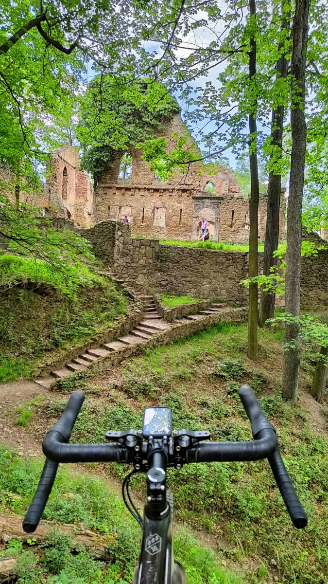 Szlak zamków zawiera sporo własnych modyfikacji, tak żeby nie było za łatwo, płasko i nudno . Trasa trudna i wymagająca, własne mody pod GRVL w dużej części okazały się wyrypą MTB. W okolicach Andrzejówki jechałem kozą po trasie zawodów obok chłopaków na fullach . Spora ilość km po szutrach premium, i taka samą ilość ścianek po 18%. Wisienka na torcie, to szlak pieszy (ścieżka Hochbergów) ze Starego Zamku Książ - urwiska, kładki, tunel, momentami max 60cm do przepaści - ale zawsze chciałem tamtędy pojechać no i ponosić rower, jak ja to zjechałem gravelem bez dzwona, to nie wiem. Całokształt sztos, wszystko boli, ale satysfakcja z poczynań na trasie ogromna.