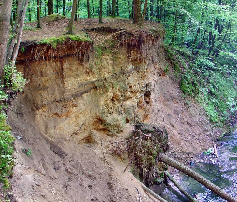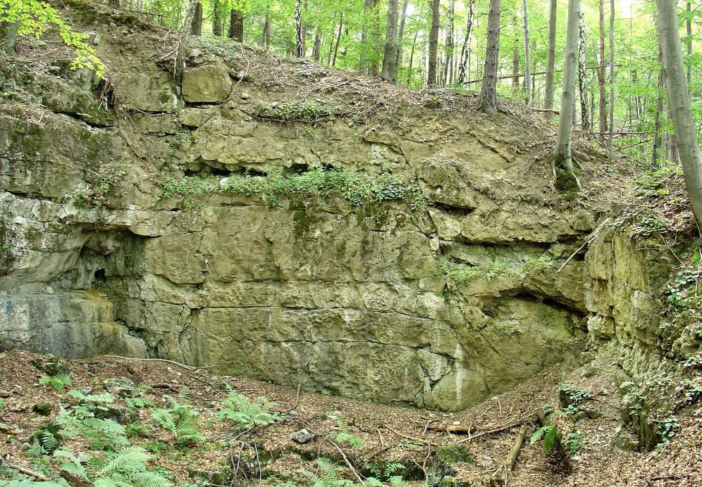 Maszerujemy dalej na południe. Za chwilę po prawej stronie, na szerokim tarasie będzie można nieco wypocząć. A przy okazji przyjrzeć się z bliska holoceńskiej martwicy wapiennej. Powstała między 8000 a 2700 lat temu, w procesach ługowania skał wapiennych przez wodę opadową, następnie późniejszego wytrącania się z niej węglanu wapnia w miejscach naturalnych zastoisk. W tej miękkiej skale można znaleźć odciski liści, skorupki ślimaków oraz małży.