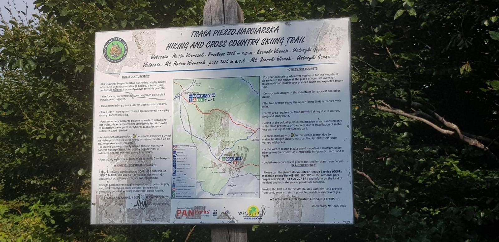 Na mapie zaprezentowana jest cała trasa samochodowa z Bieszczadów na stronę słowacką i dalej na Ukrainę. Rowerem możemy dodatkowo przekroczyć granicę wygodną drogą z Cisnej przez Przełęcz nad Roztokami (Przeł. Ruska), a poza parkiem istnieje kilka innych możliwości przejazdów terenowych. Mapa obejmuje aż 3 parki narodowe: Bieszczadzki Park Narodowy, Park Narodowy Połoniny oraz częściowo Użański Park Narodowy. Wydanie mapy poprzedziła gruntowna weryfikacja terenowa oraz konsultacje ze „znawcami” terenu, efektem czego jest aktualna sieć szlaków turystycznych, dokładna lokalizacja zabytków architektury sakralnej, cmentarzy wojennych, pomników przyrody i innych ciekawych obiektów. Dużo uwagi poświęciliśmy na weryfikację i odpowiednią klasyfikację sieci dróg - wyróżniając te wyasfaltowane i szutrowe (utwardzone). Zrobiliśmy to z myślą o rowerzystach. Wskazaliśmy również miejsca zakazu wjazdów dla pojazdów samochodowych. Na mapie zastosowano cieniowanie w celu uzyskania wrażenia plastyczności rzeźby terenu. Mapę offline można zakupić w aplikacji Traseo na urządzenia mobilne. Rok wydania 2017