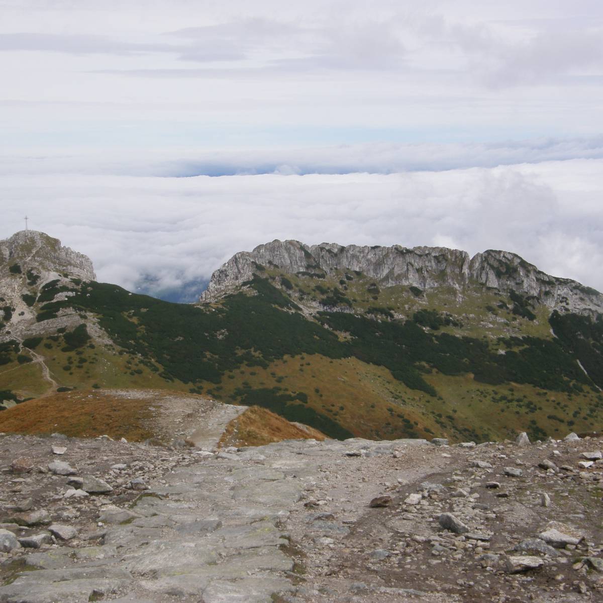 Z Kuźnic kolejką Linową na Kasprowy Wierch. Można podziwiać przepiękne widoki m in. na Dolinę Goryczkową, Dolinę Kasprową widać też Giewont. Przesiadka do innego wagonika na Myślenickich Turniach.Na szczycie zaczynami wędrówkę czerwonym szlakiem wzdłuż grani. Idąc mijamy pośredni Wierch Goryczkowy oraz Goryczkową Czubę. Następnie Suche Czuby. Na końcu wspinamy się Suchy Wierch Kondracki i w końcu stajemy na szczycie Kondracka Kopa. Mamy tam wspaniały widok na masyw Giewontu, Dolinę Małej Łąki, Dolinę Kondratową oraz Tatry po stronie Słowackiej. Schodzimy w dół żółtym szlakiem do Kondrackiej Przełęczy. Następnie wspinamy się niebieskim do Wyżniej Kondrackiej Przełęczy a potem czerwonym idziemy w dół w kierunku Siodła. Mijamy po drodze Mały Giewont i Giewoncką Przełęcz. Dalej Grzybowiec, Przełęcz w Grzybowcu i dochodzimy do Doliny Strążyskiej. Tam wchodzimy na czarny szlak Drogi nad Reglami i po ponad godzinnej ciężkiej wspinaczce dochodzimy do Czerwonej Przełęczy. Następnie w dół do Doliny Białego. Dalej żółtym szlakiem do Drogi pod Reglami, w prawo w kierunku Skocznia Wielka Krokiew. Przy skoczni schodzimy ze szlaku i kierujemy się do centrum Zakopanego.