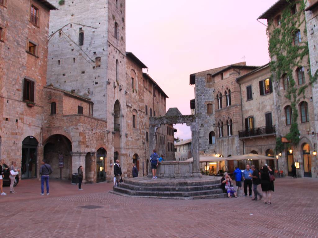 Jedno z wielu maleńkich toskańskich miast, jakie trwa przy starym, średniowiecznym charakterze. Łatwo to miasta z daleka rozpoznać po charakterystycznych, kwadratowych wieżach. Ogromną przyjemność sprawia włóczenie się po krętych wąskich uliczkach oraz spoglądanie z góry na okoliczne winnice. Wieczorna pora sprawiła, że turystów nie było już wielu, więc i spokoju więcej. A na rynku - "najlepsze lody na świecie", jak sami przekonują szyldem.
